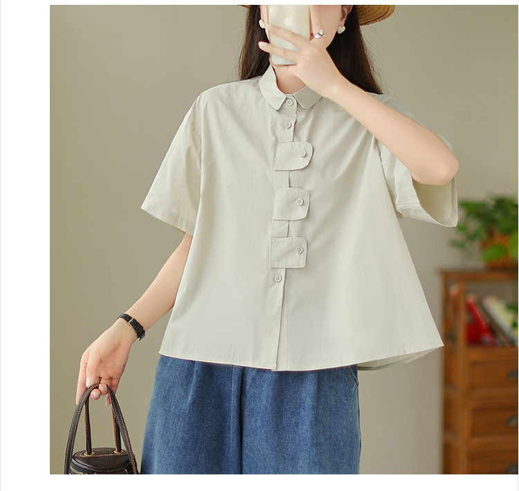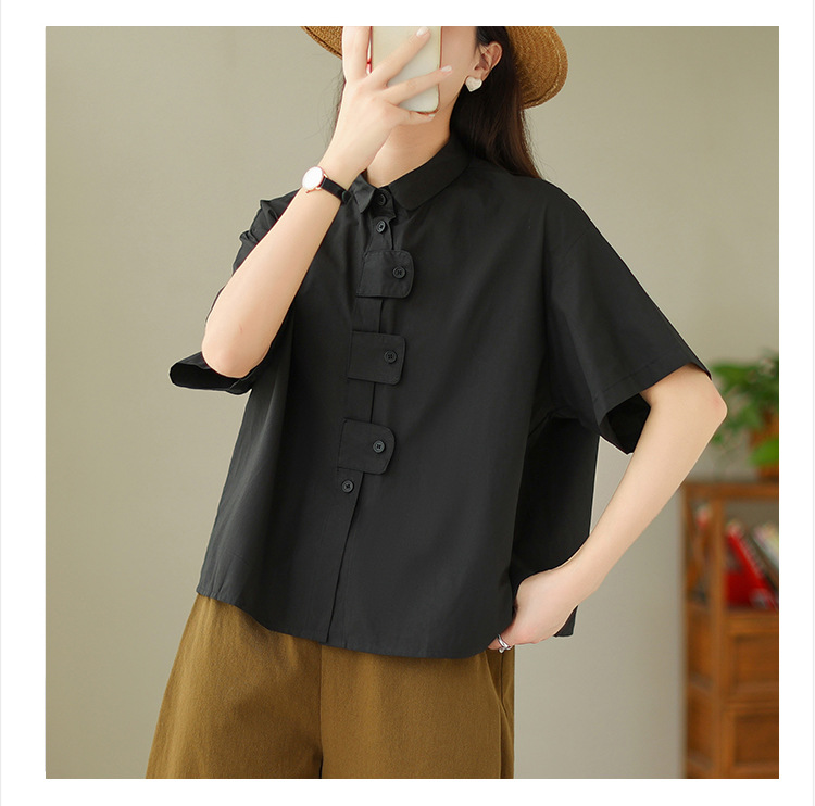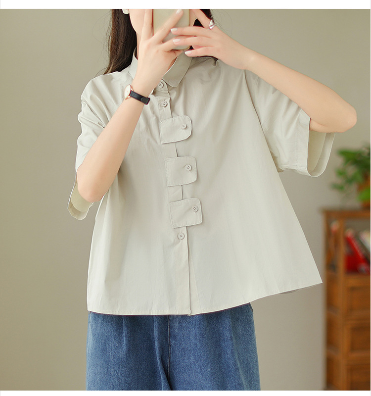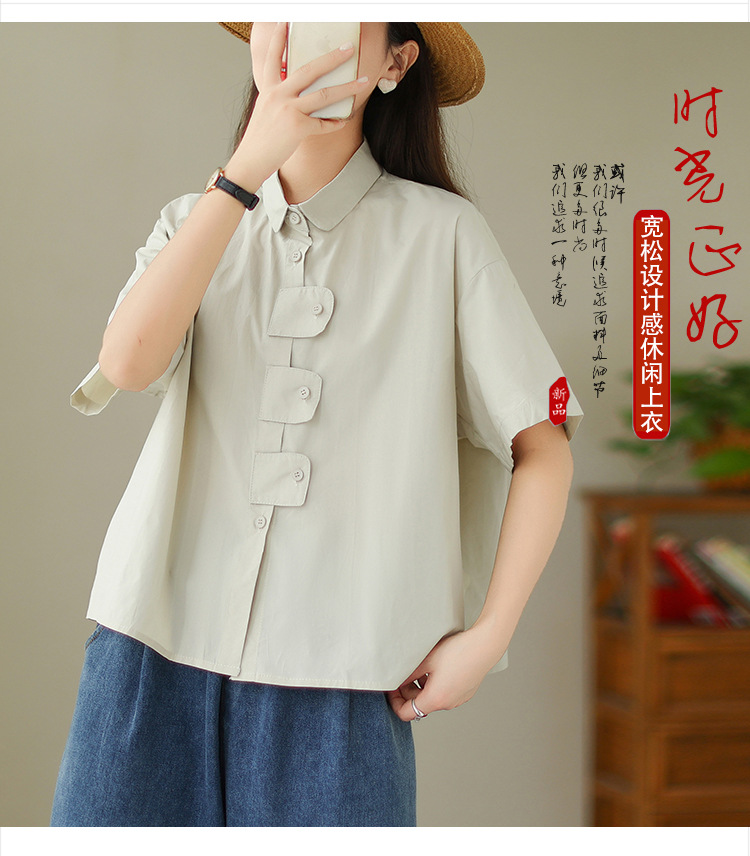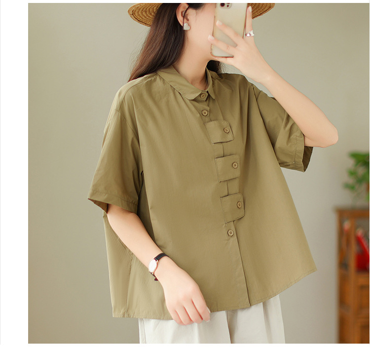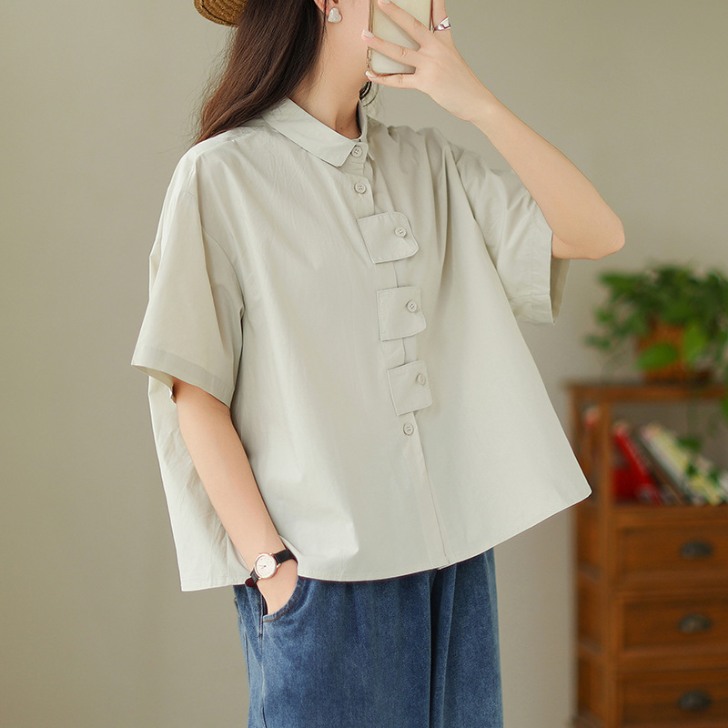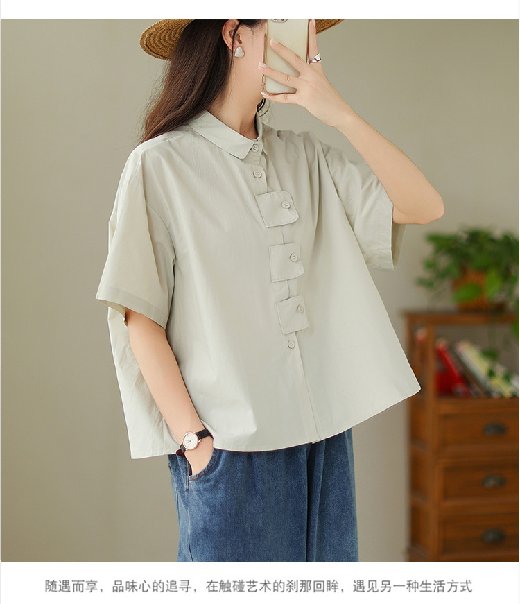 여성용 문학 플러스 사이즈 솔리드 컬러 캐주얼 루즈 셔츠
