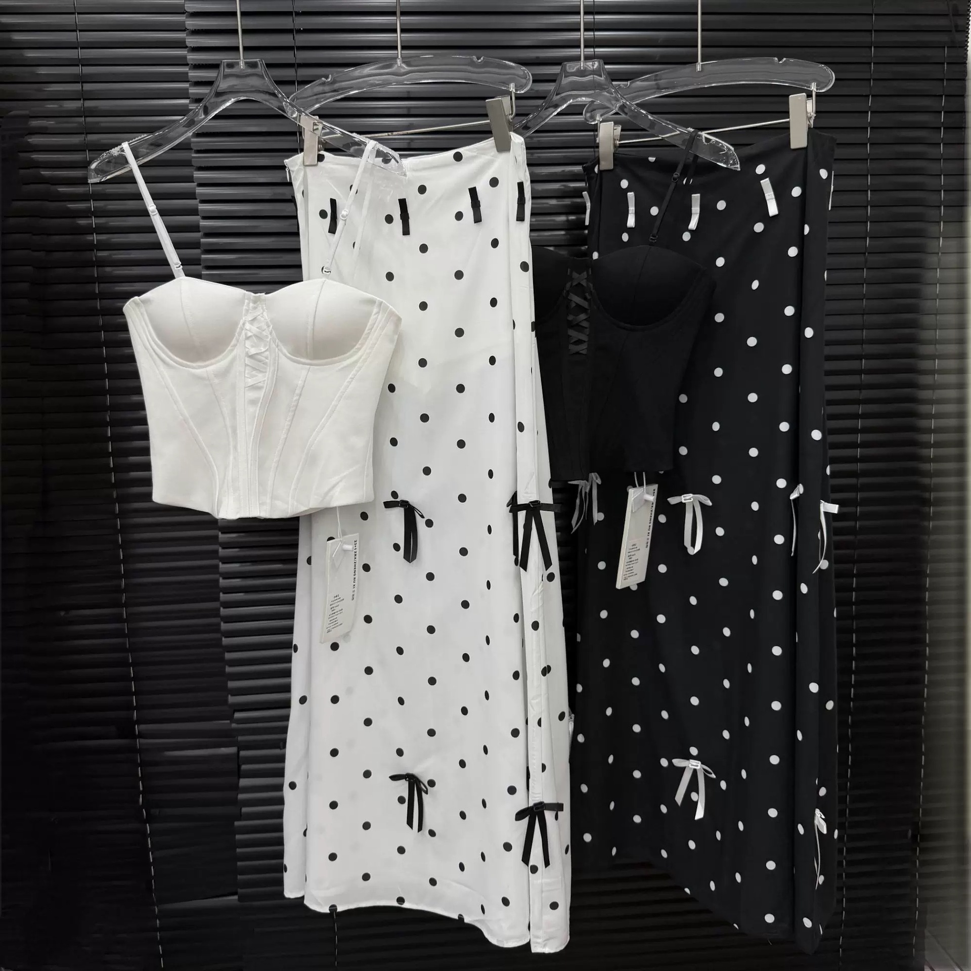 2025 여성을위한 새로운 세트 틈새 스트랩 + 스커트 3 차원 활 디자인 투피스 세트