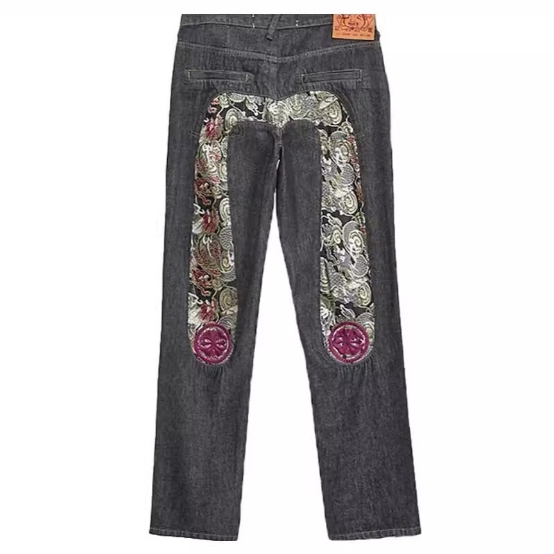 아메리칸 스트리트 레트로 힙합 프린트 스트레이트 청바지 남성 패션 캐주얼 다목적 슬림 청바지 코튼스토어 가기