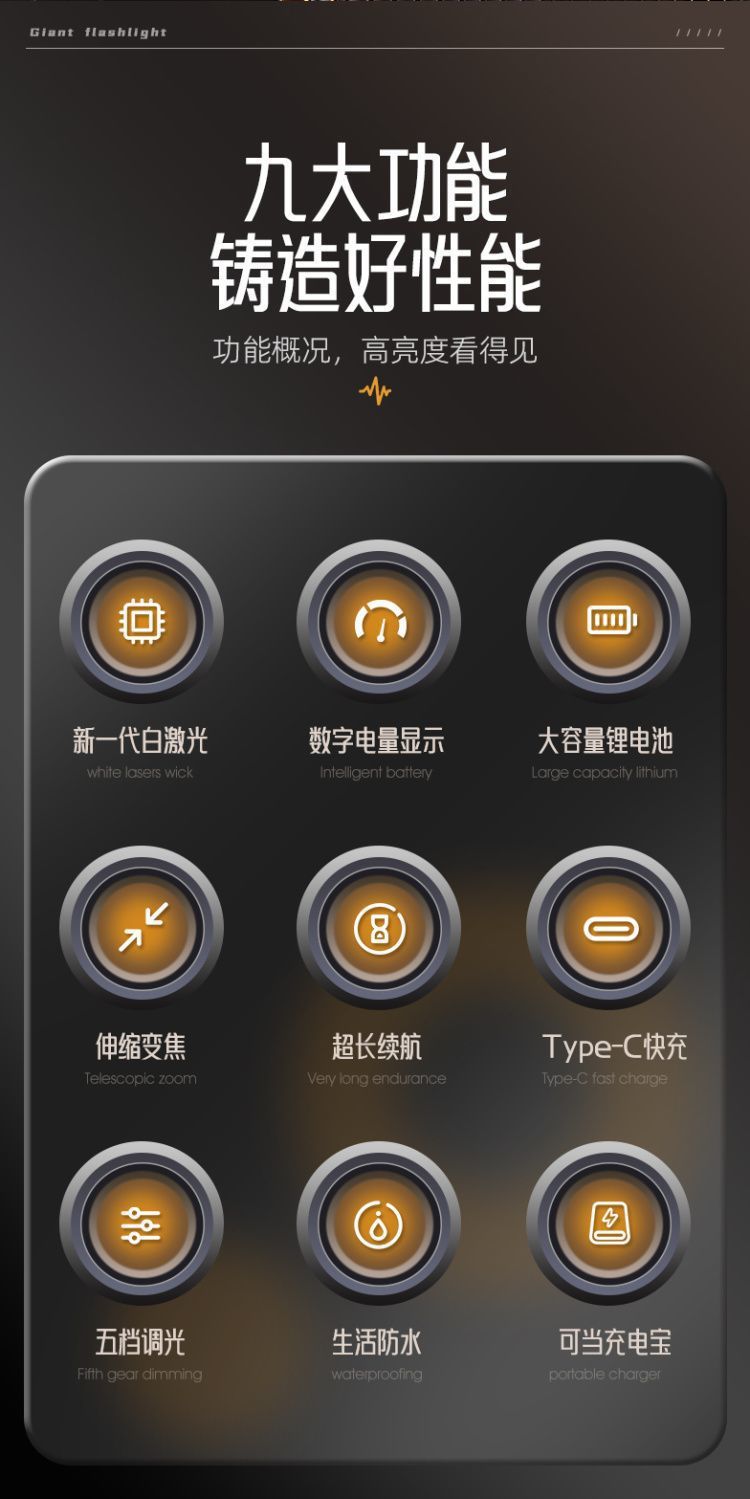 • 1000루멘 백색 레이저 LED 손전등 세트