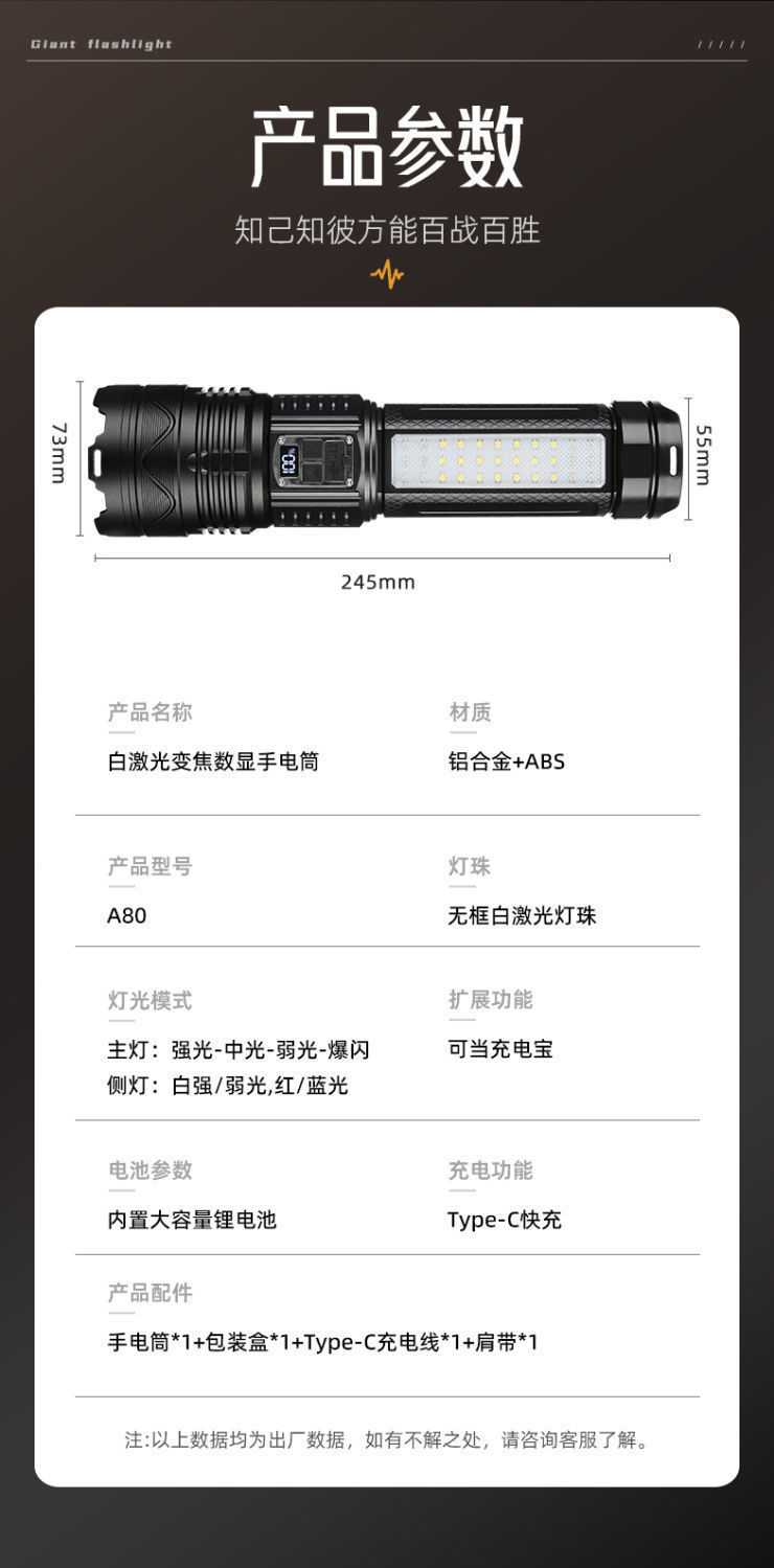 국경 간 LED 레이저 총 손전등 야외 강한 빛 스트랩 순찰 조명 텔레스코픽 줌 장거리 알루미늄 합금 서치라이트