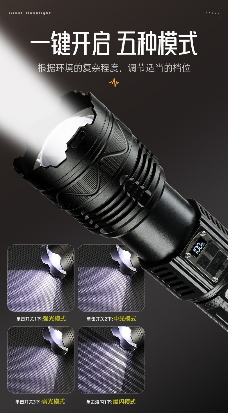 국경 간 LED 레이저 총 손전등 야외 강한 빛 스트랩 순찰 조명 텔레스코픽 줌 장거리 알루미늄 합금 서치라이트스토어 가기
