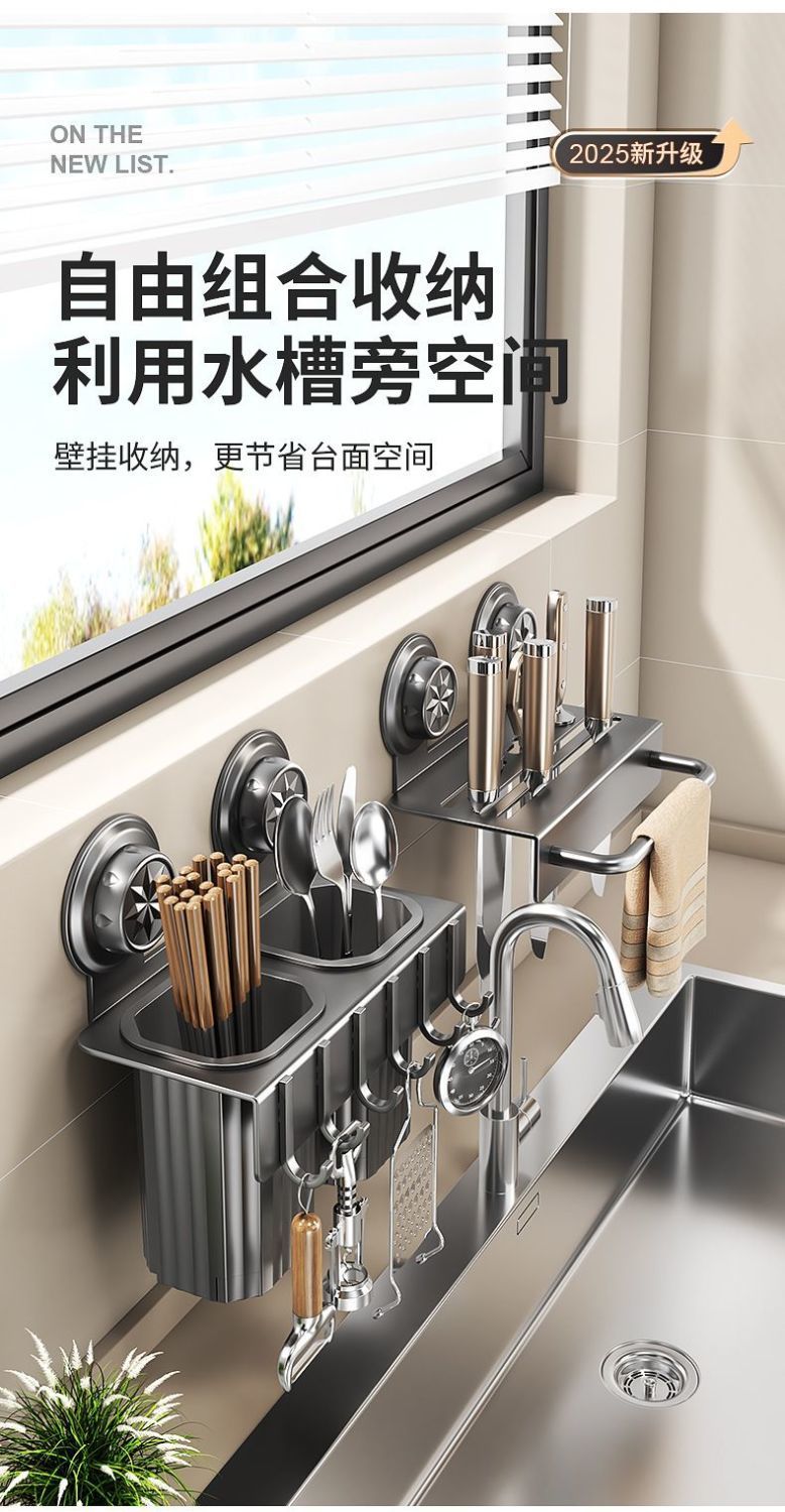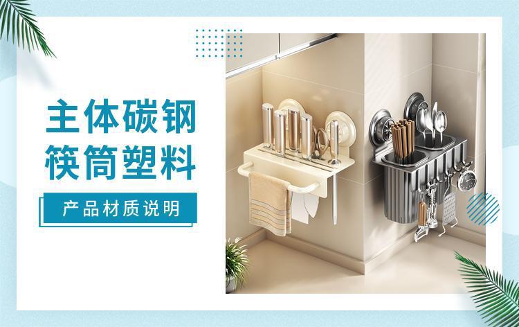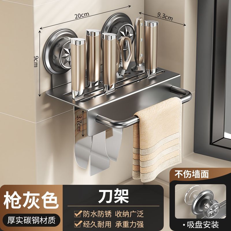 공장 공급 간단한 현대 흡입 유형 탄소 강철 칼 홀더 펀치 무료 주방 보관 2-in -1 젓가락 보관스토어 가기