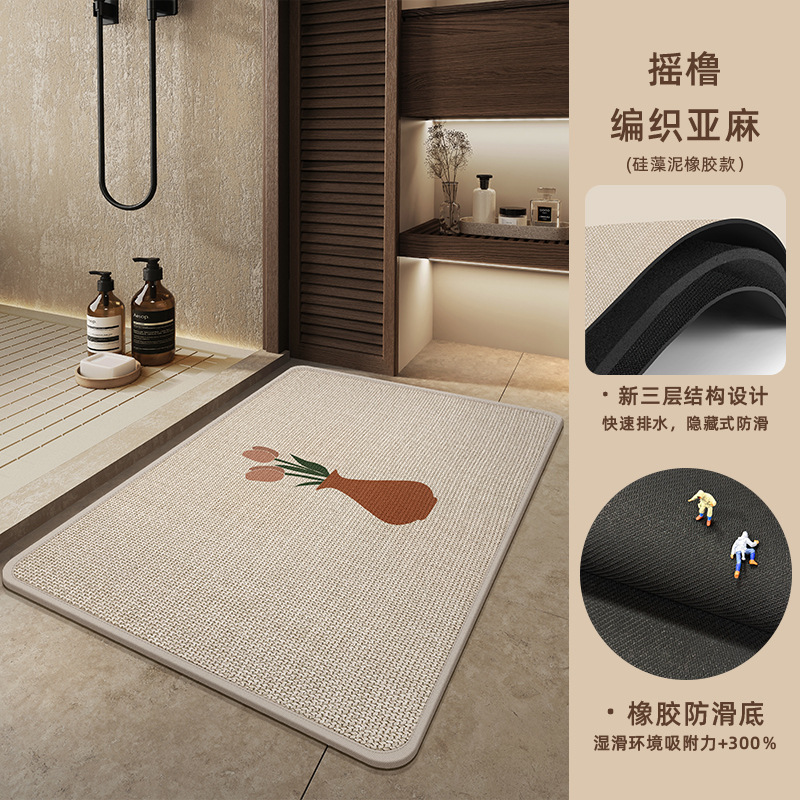 고급 욕실 바닥 매트 화장실 화장실 문 매트 흡수 먼지 방지 미끄럼 방지 거실 린넨 짠 인쇄 매트스토어 가기