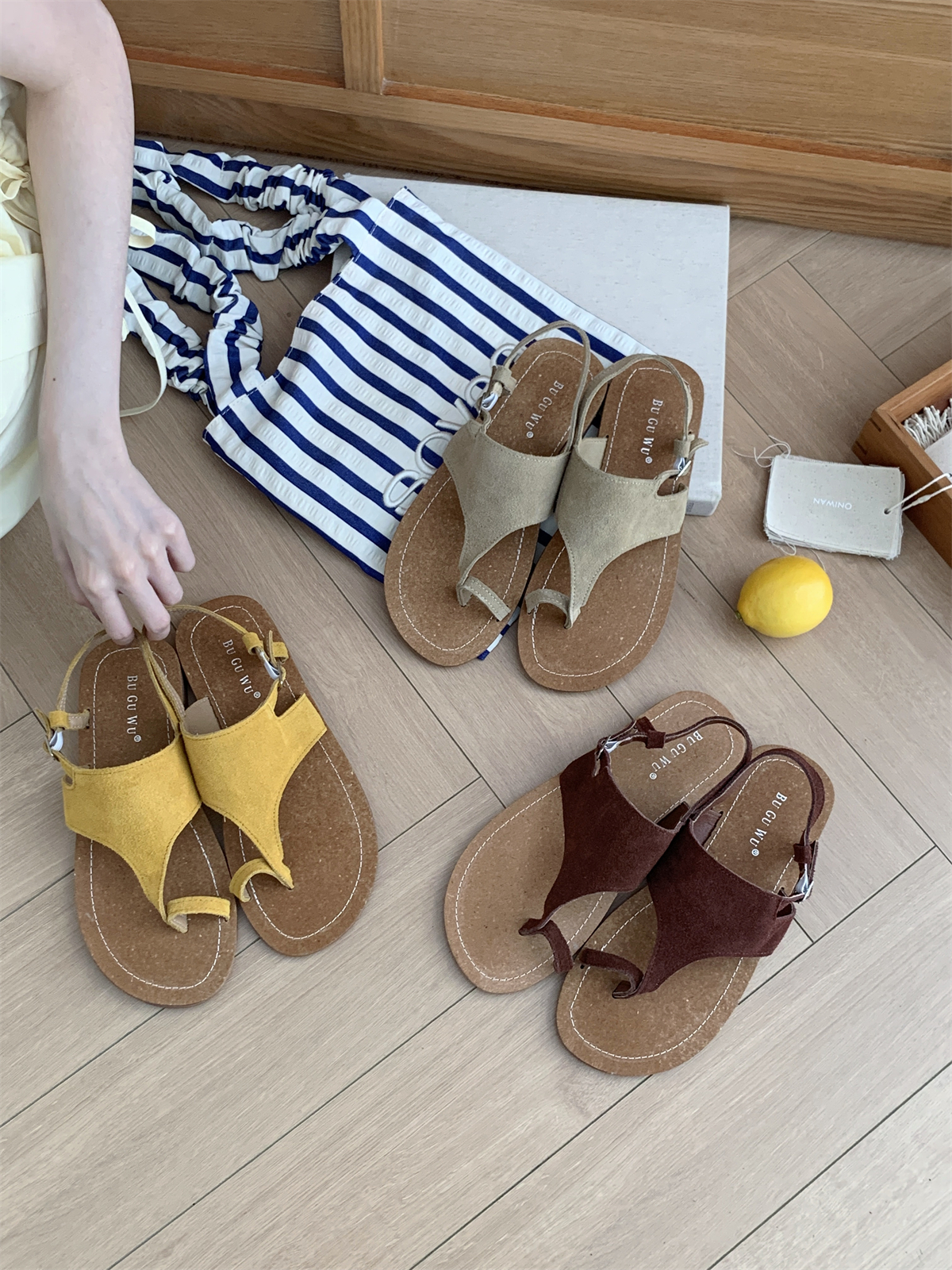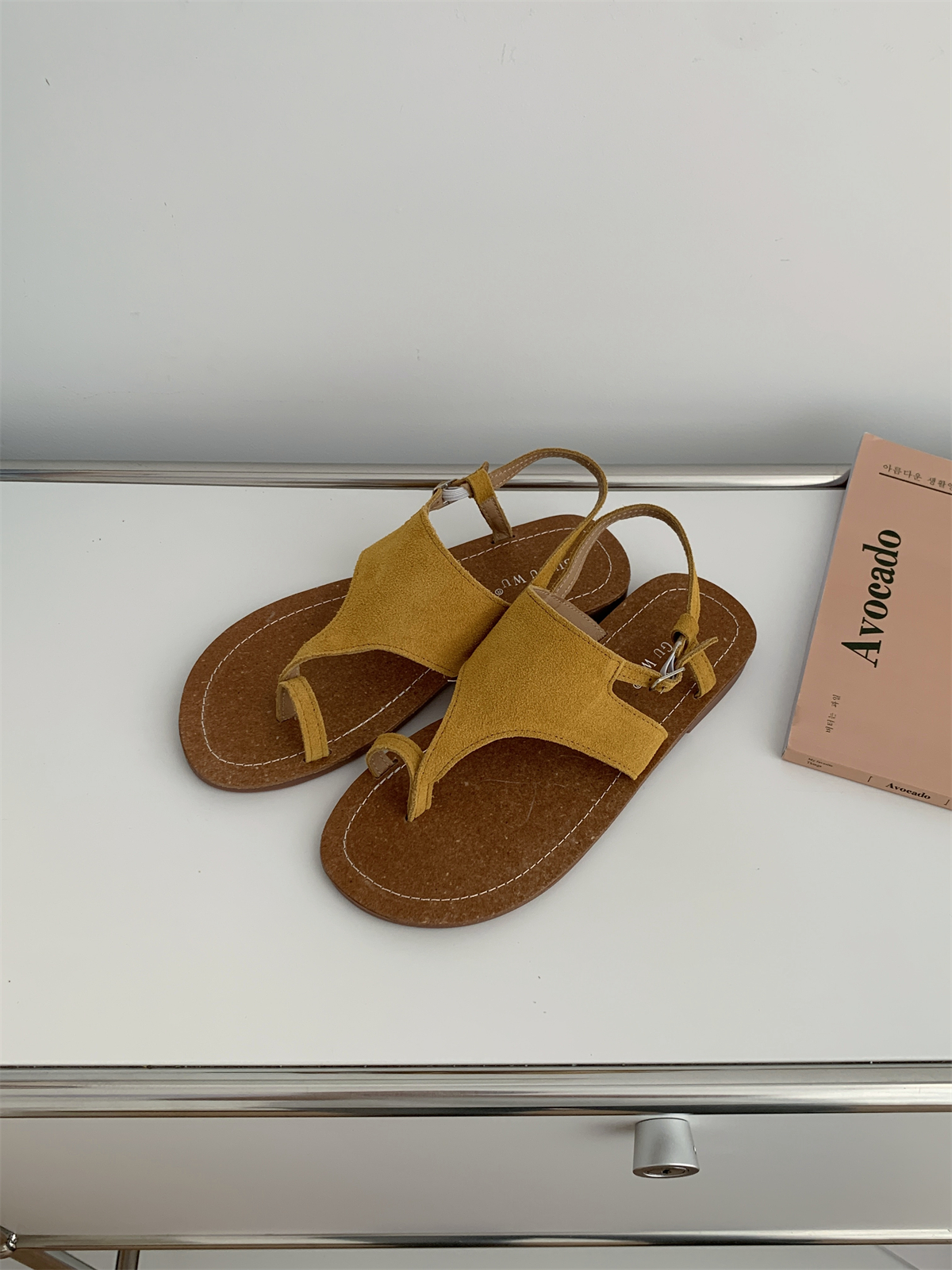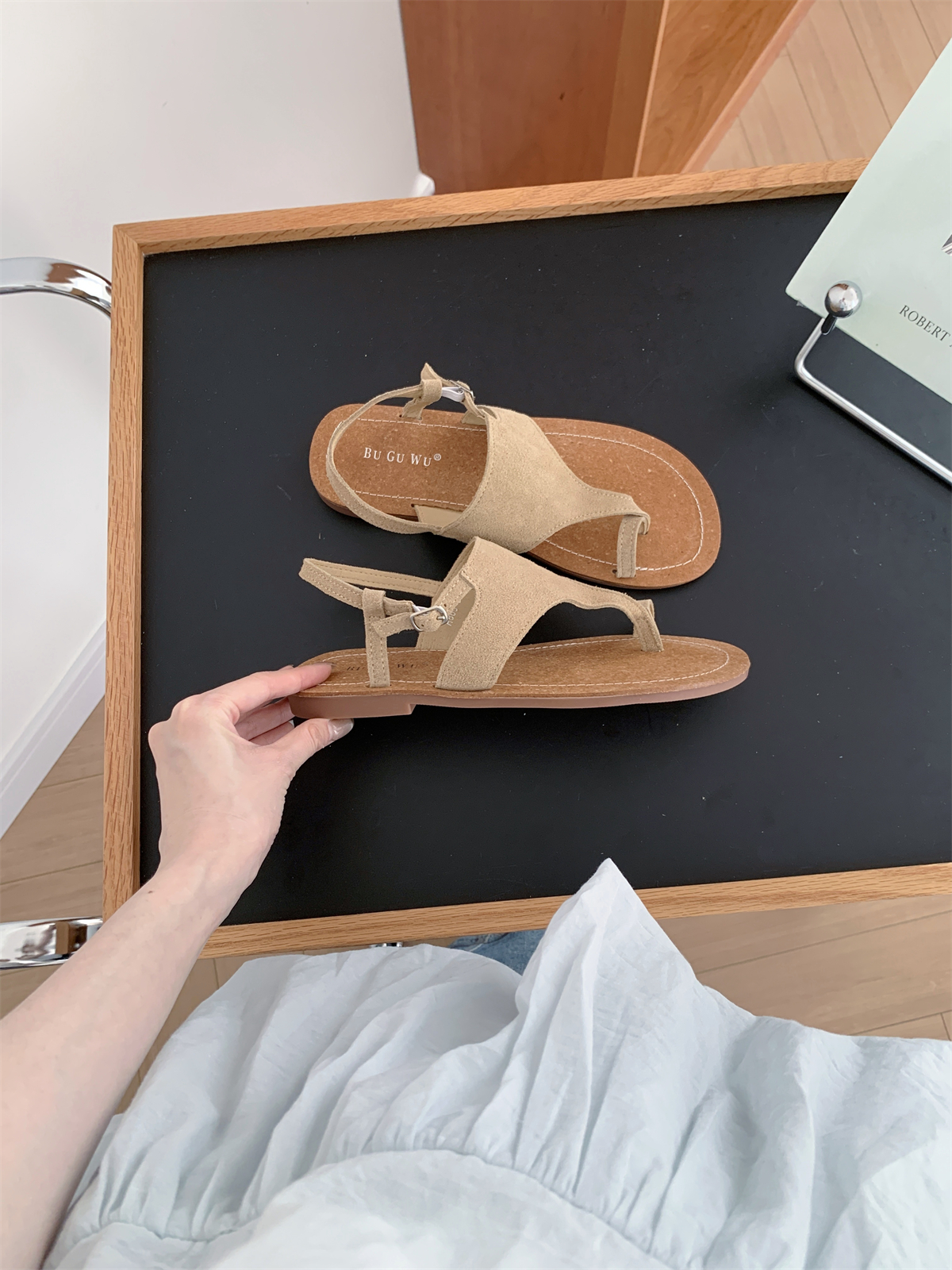 여성을위한 프랑스 복고풍 리조트 스타일 플립 플롭 패션 샌들 여름 겉옷 2025 새로운 캐주얼 플랫 바닥 해변 로마 신발스토어 가기