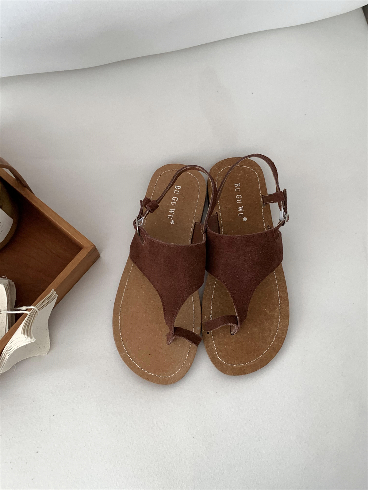 여성을위한 프랑스 복고풍 리조트 스타일 플립 플롭 패션 샌들 여름 겉옷 2025 새로운 캐주얼 플랫 바닥 해변 로마 신발