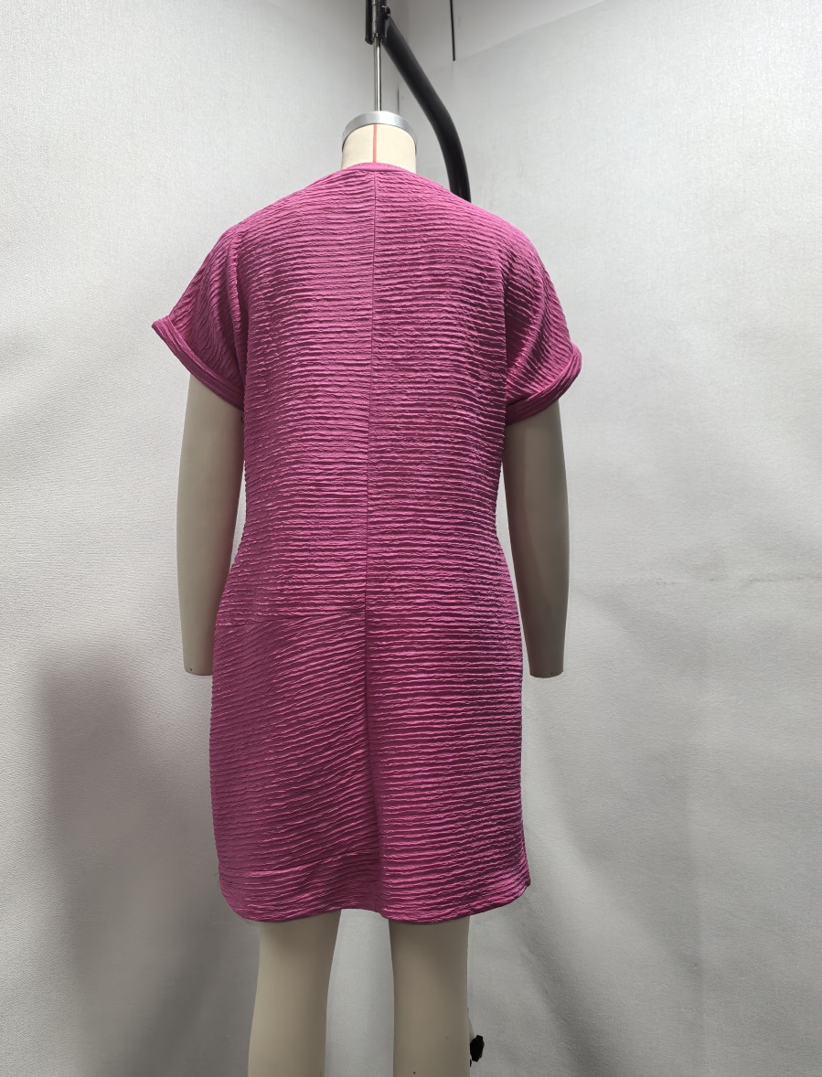 유럽과 미국의 국경 간 Amazon 독립 스테이션 2025 여름 신제품 루즈한 라운드 넥 포켓 솔리드 컬러 여성용 반팔 드레스