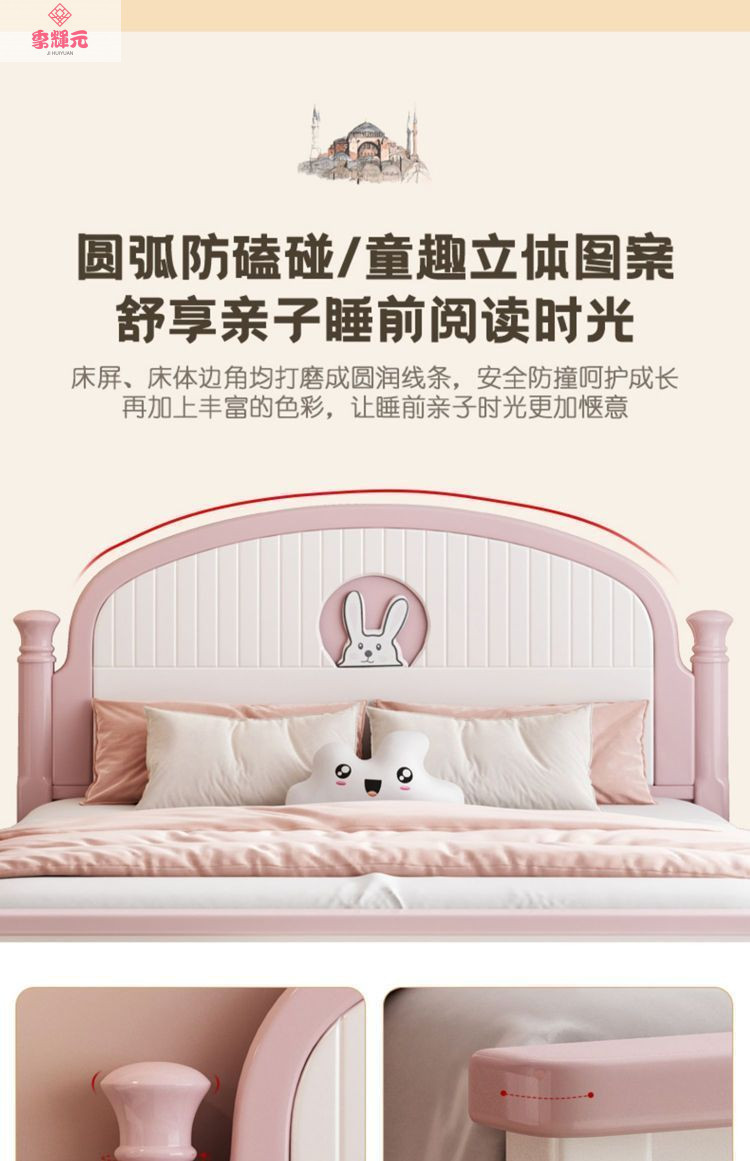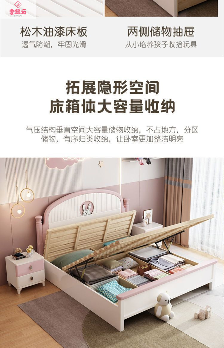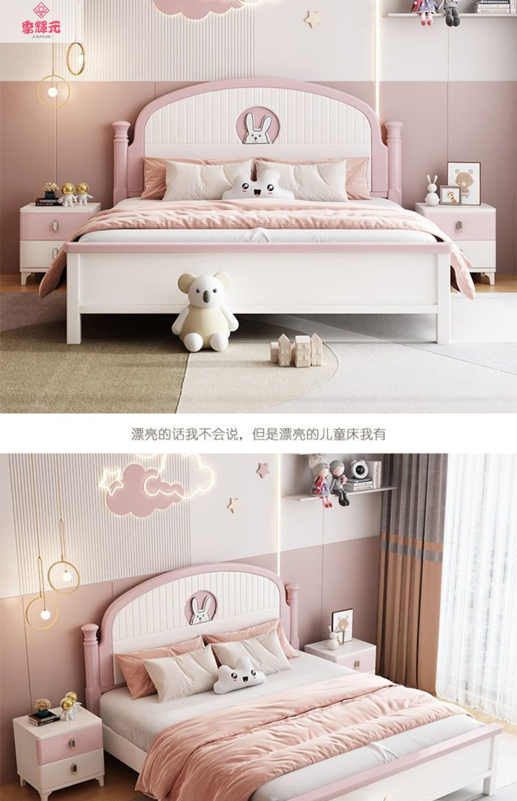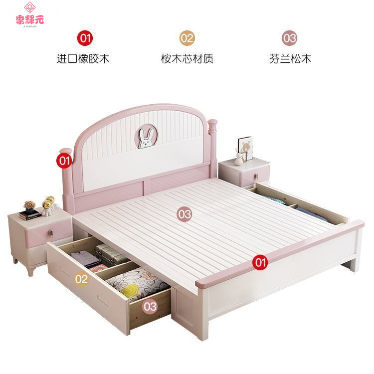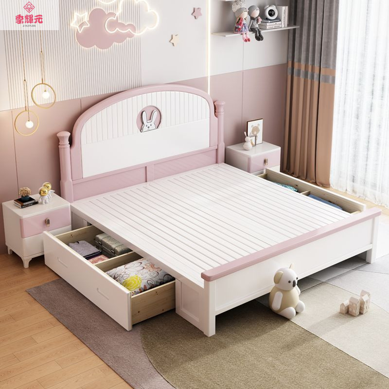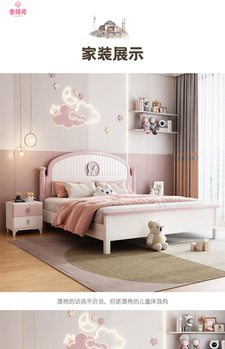 Jihuiyuan 가정용 어린이 크림 소녀 공주 침대 핑크 소년 더블 침대 풀 세트 작은 아파트 학생 미니멀리스트