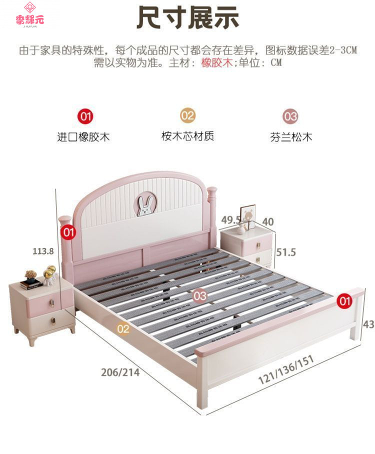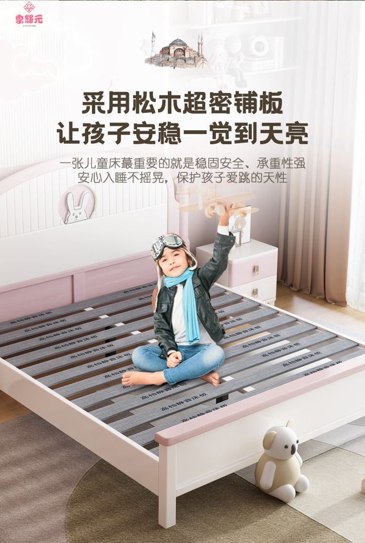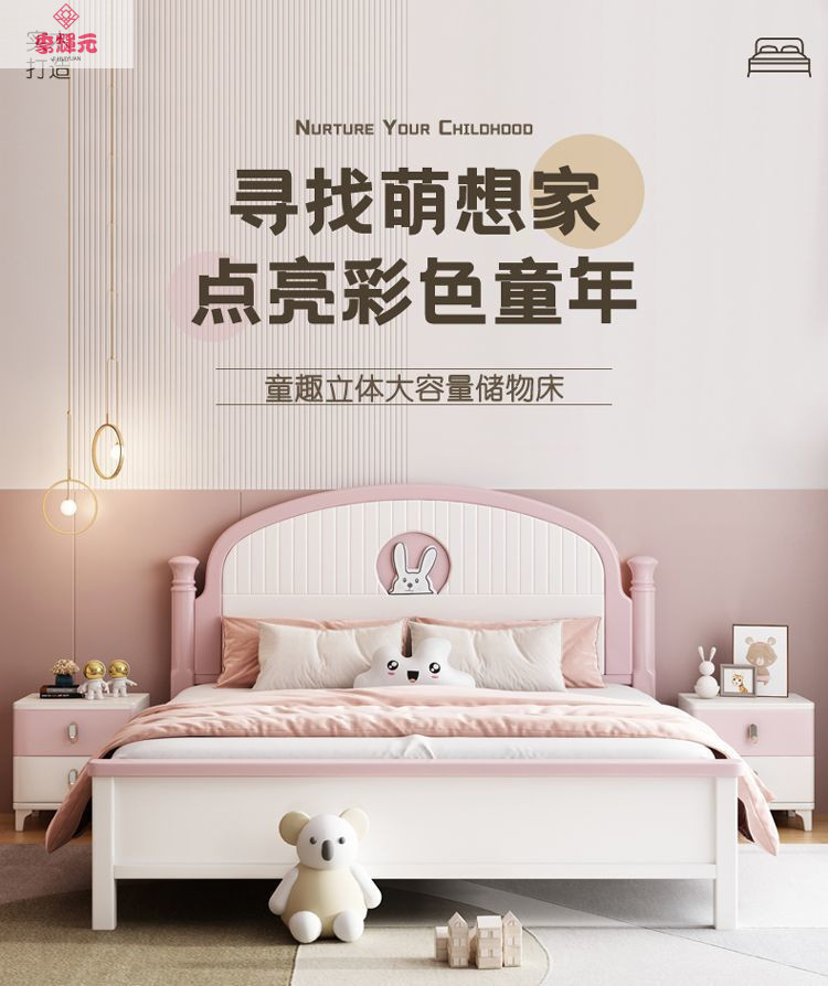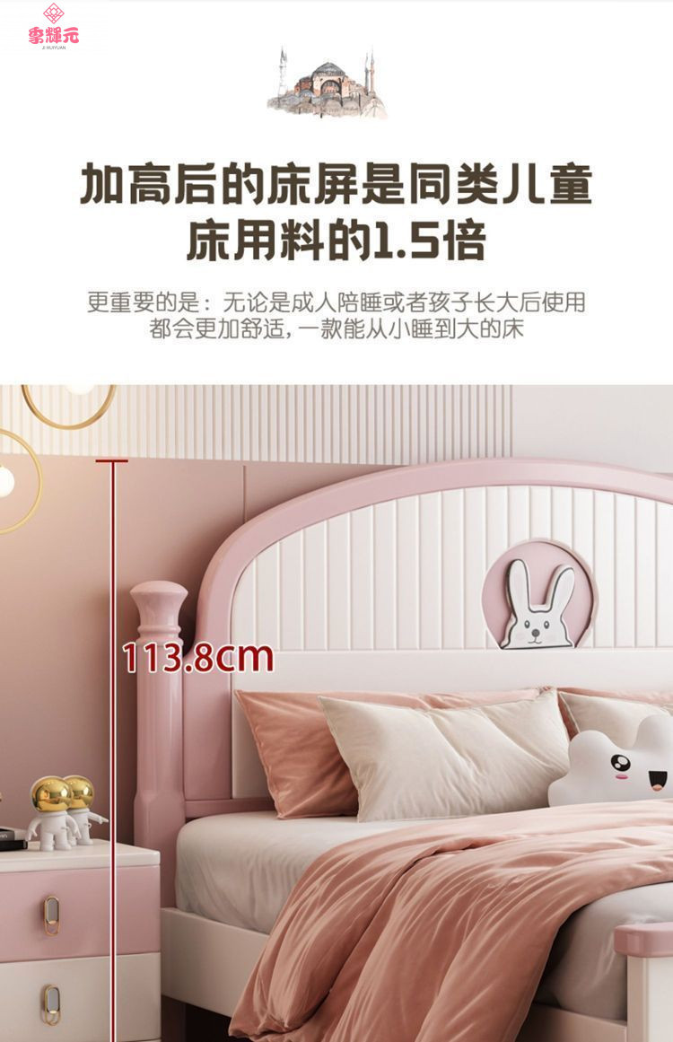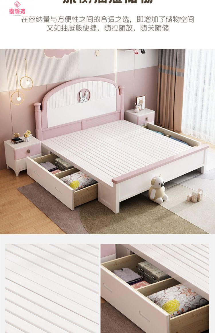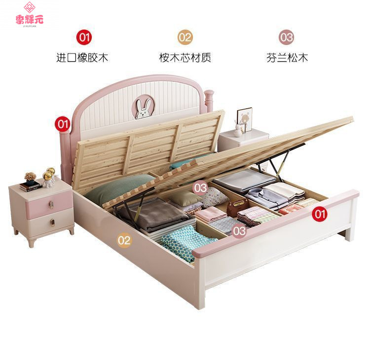 Jihuiyuan 가정용 어린이 크림 소녀 공주 침대 핑크 소년 더블 침대 풀 세트 작은 아파트 학생 미니멀리스트