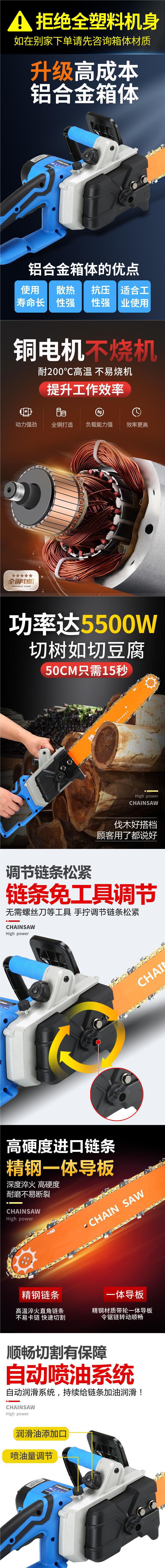 수입 Wuyang 220V 이중 용도 전기 전기 톱 플러그인 배터리 자동차 48-72V 전기 톱 가정용 고출력 벌목 톱스토어 가기