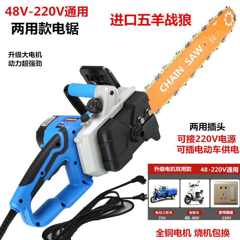 수입 Wuyang 220V 이중 용도 전기 전기 톱 플러그인 배터리 자동차 48-72V 전기 톱 가정용 고출력 벌목 톱