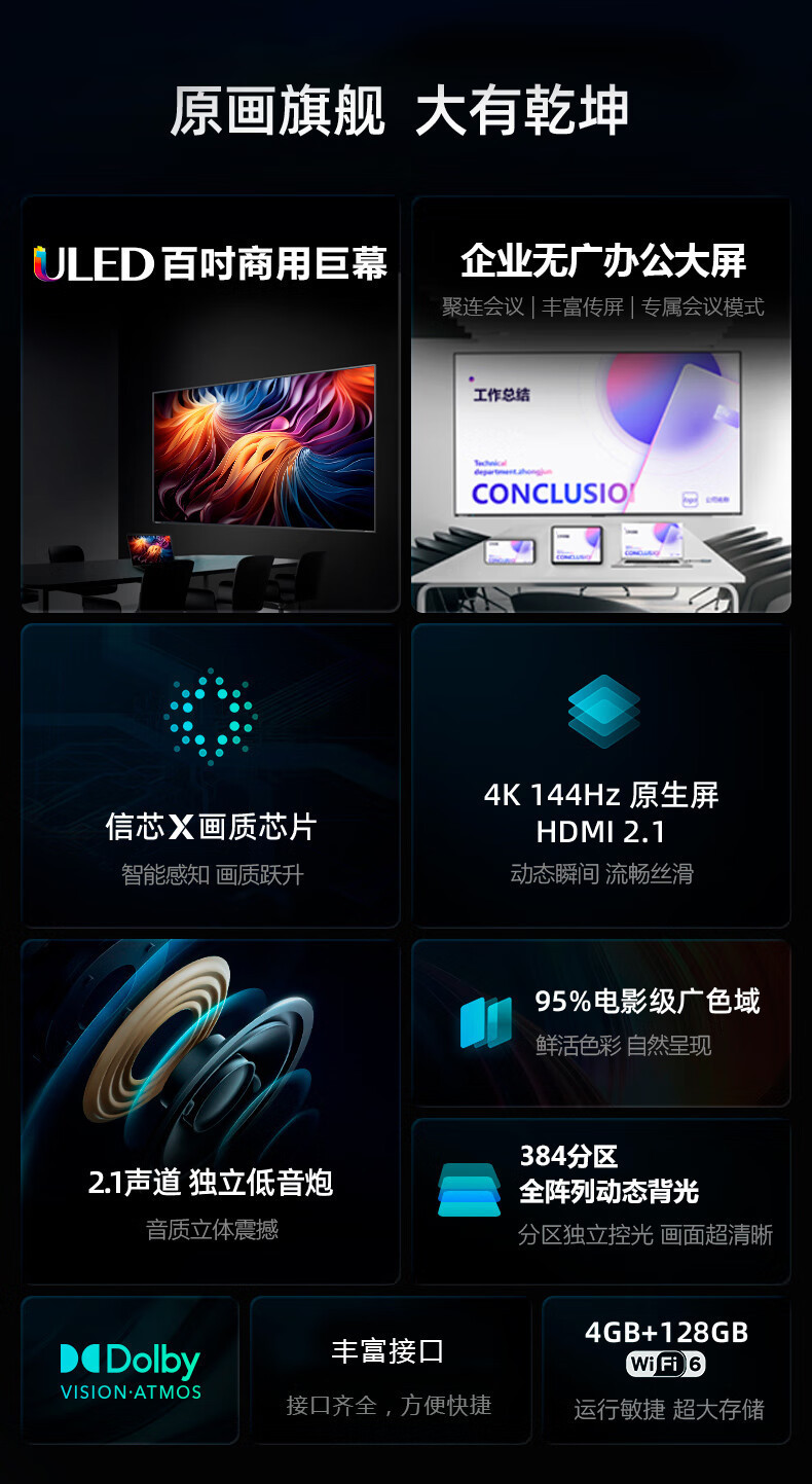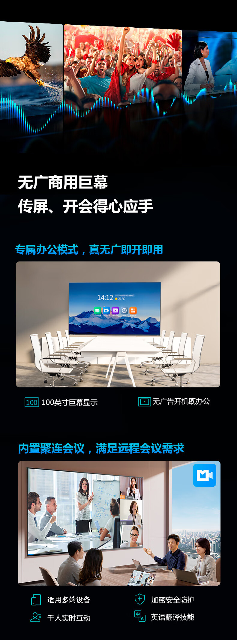 스마트 회의 평면 TV 상업용 대형 스크린 100inch 144HZ 대형 스크린 상업용/가정용 100MM5D스토어 가기