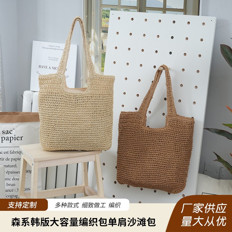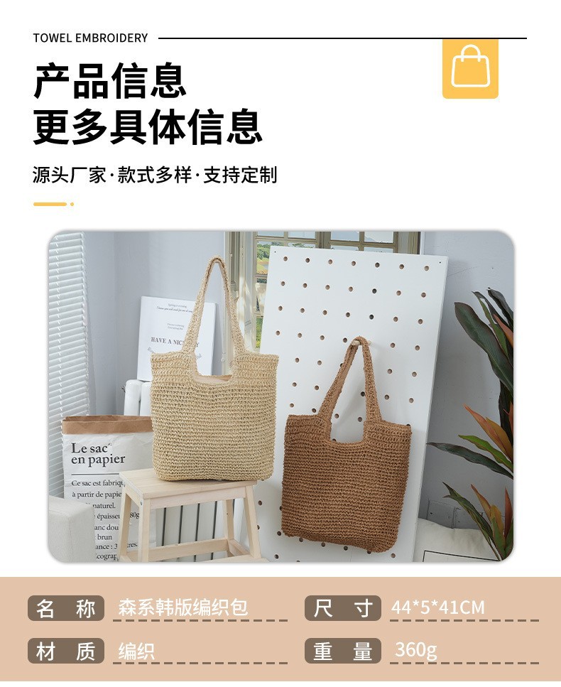 도매 한국 스타일 여성 가방 높은 감각 대용량 언더암 가방 2025 새로운 밀짚 가방 패션 어깨 가방스토어 가기