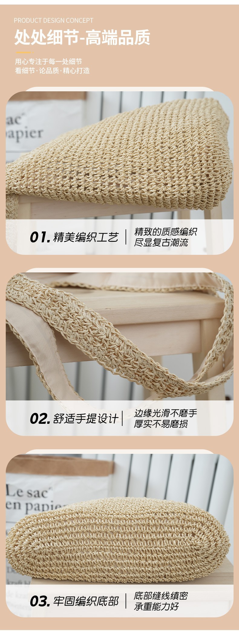 도매 한국 스타일 여성 가방 높은 감각 대용량 언더암 가방 2025 새로운 밀짚 가방 패션 어깨 가방