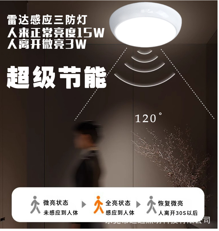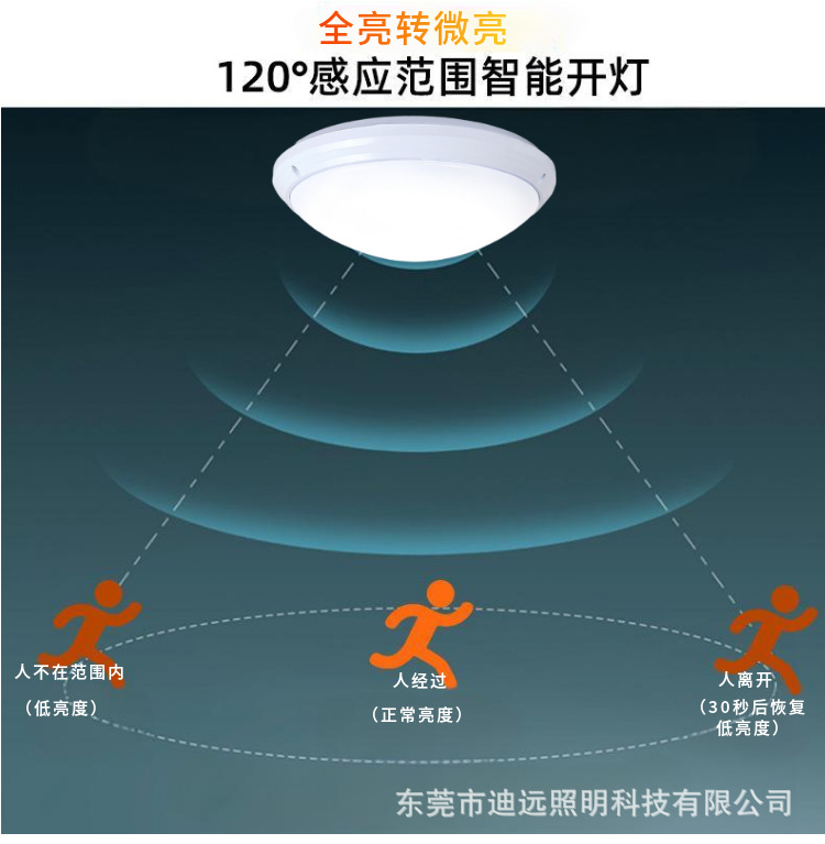 LED 레이더 유도 천장 조명, 완전 밝음에서 약간 밝음으로 스마트 전환, 3중 방지 조명 엔지니어링 맞춤형 유도 조명