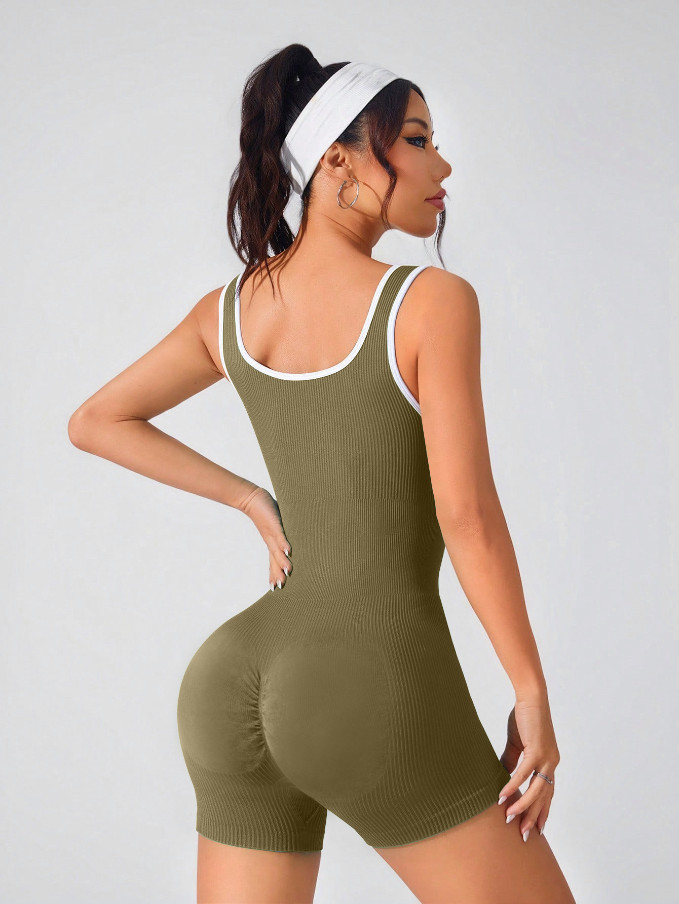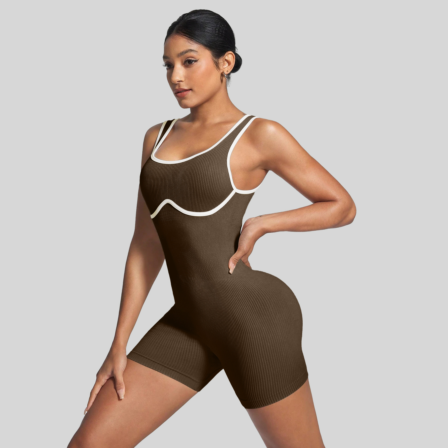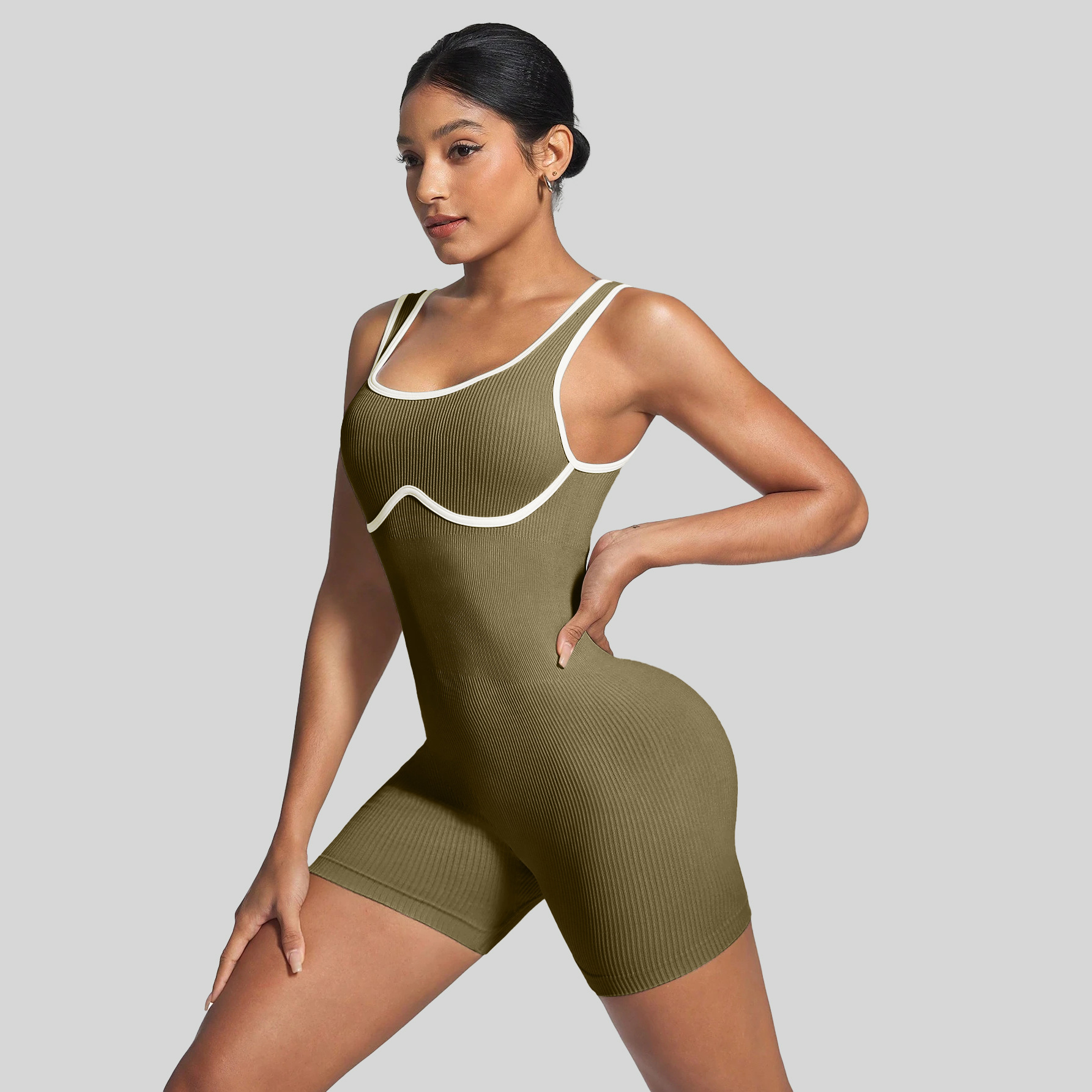 Xinhong 충격 방지 원활한 슈트 에어 원피스 러닝 피트니스 슈트 대비 색상 요가 슈트 댄스 타이트 여성 스레드