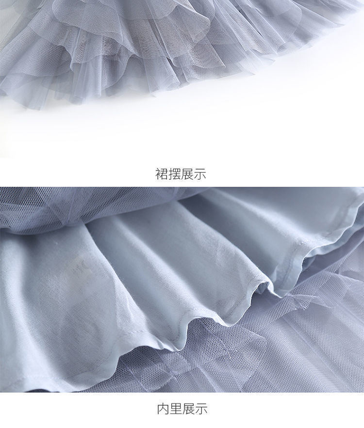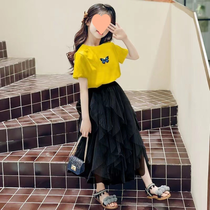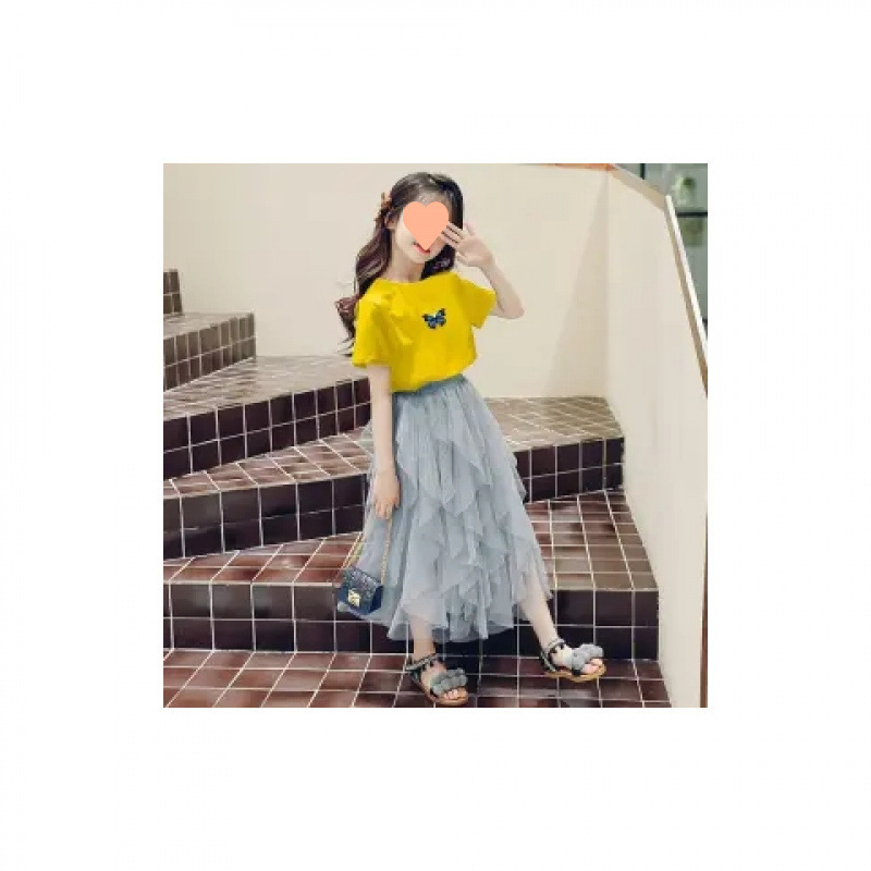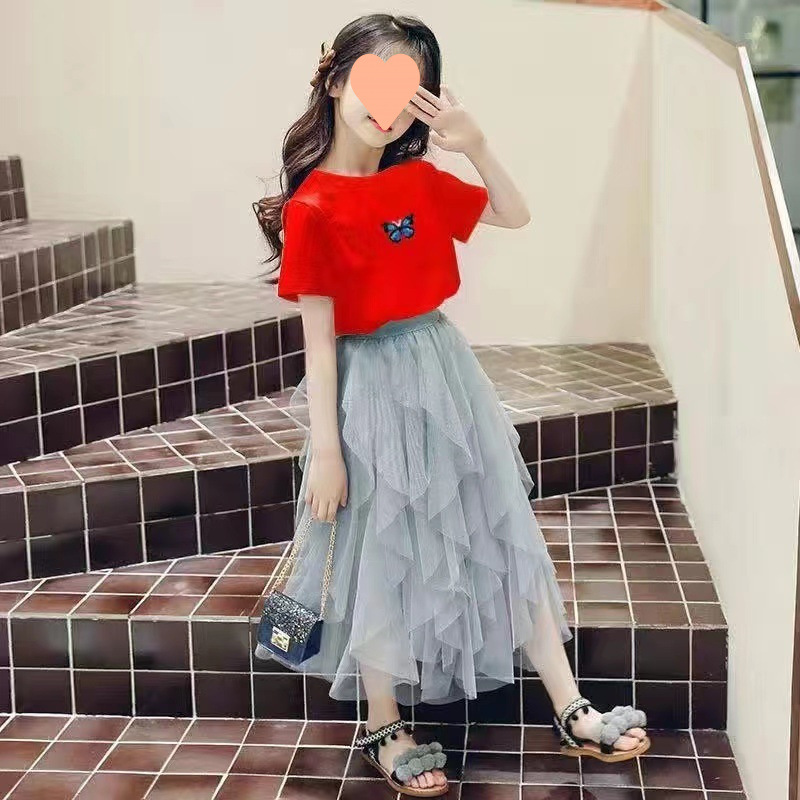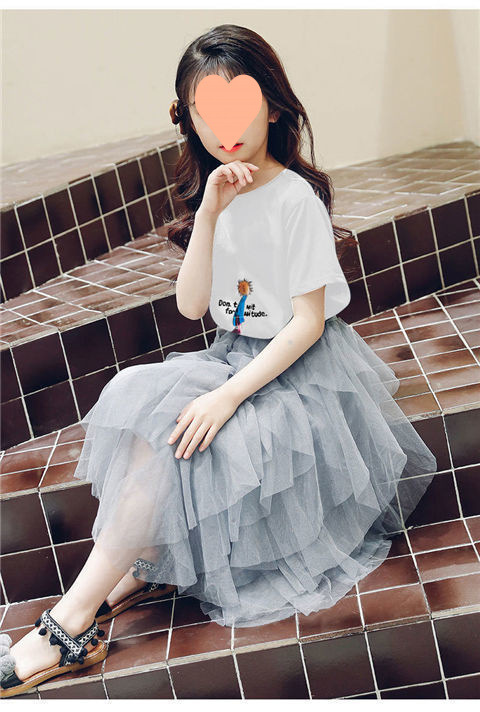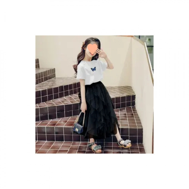 여자 스커트 정장 2025 새로운 공주 거즈 스커트 중대형 어린이 여름 스타일 탑과 스커트 투피스 세트
