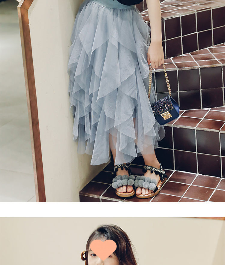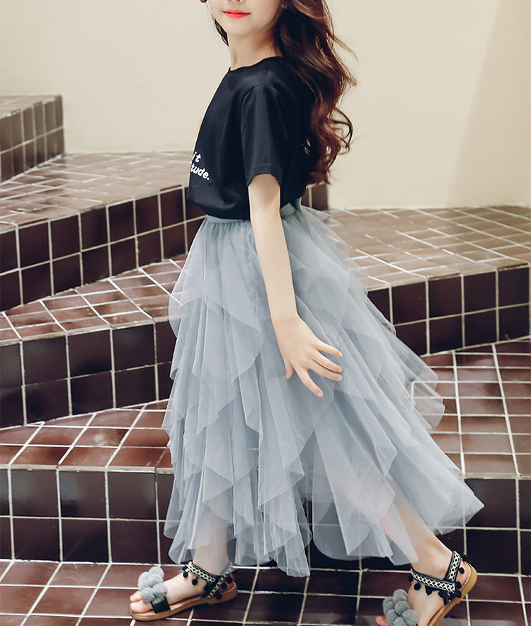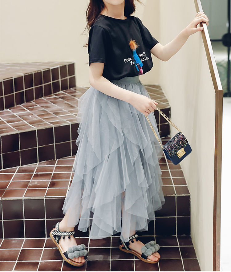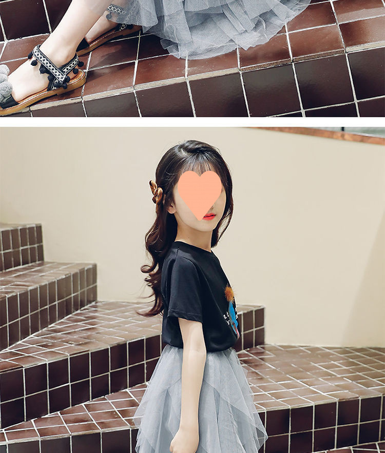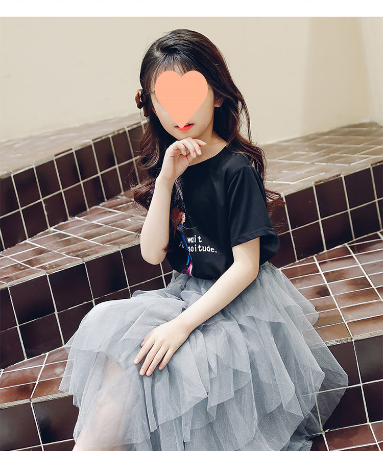 여자 스커트 정장 2025 새로운 공주 거즈 스커트 중대형 어린이 여름 스타일 탑과 스커트 투피스 세트