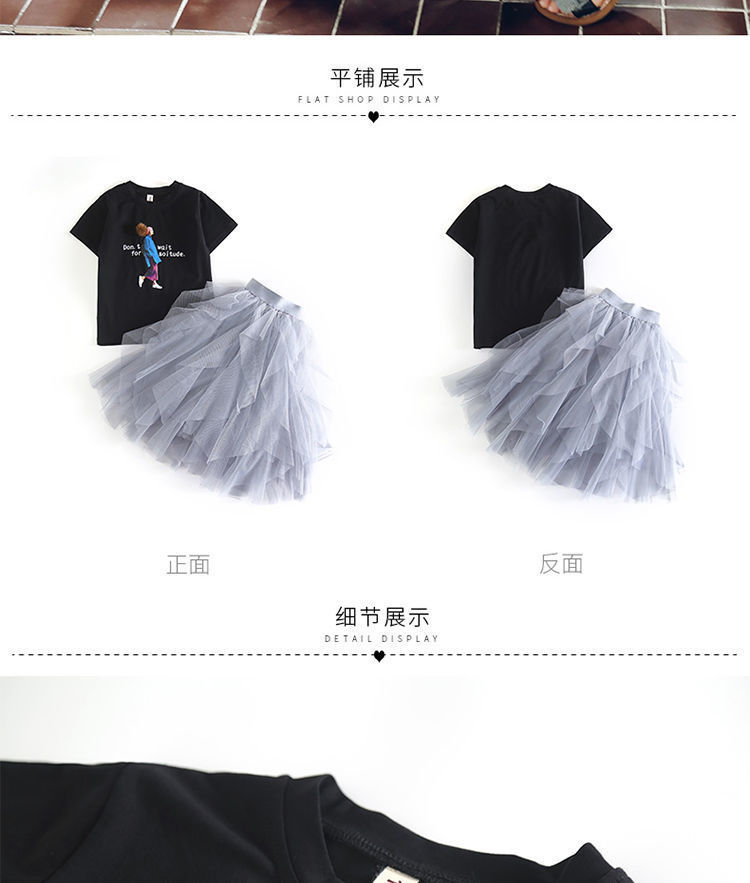 여자 스커트 정장 2025 새로운 공주 거즈 스커트 중대형 어린이 여름 스타일 탑과 스커트 투피스 세트스토어 가기