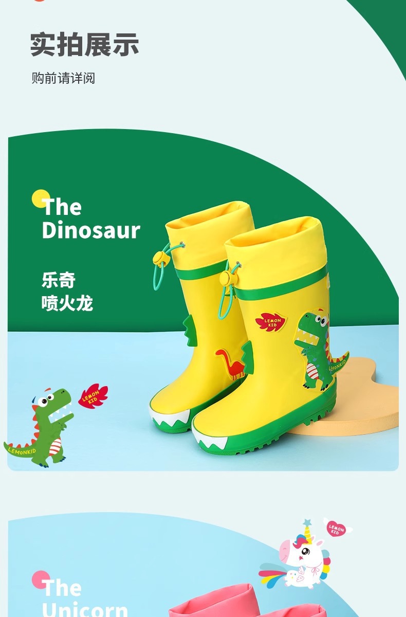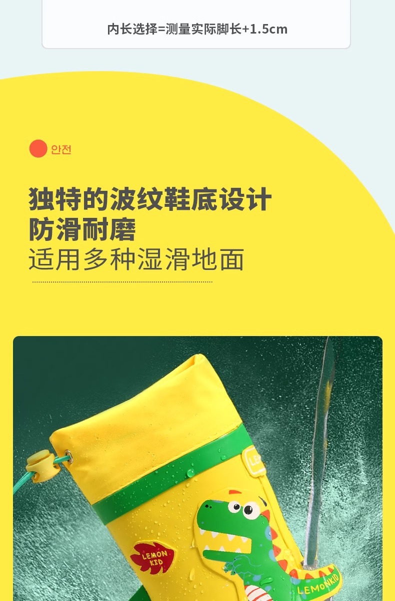 레몬 아기 어린이 비 신발 소년 소녀 중소 어린이 물 신발 고무 신발 세트 미끄럼 방지 장화 초등 학생을위한 비옷스토어 가기