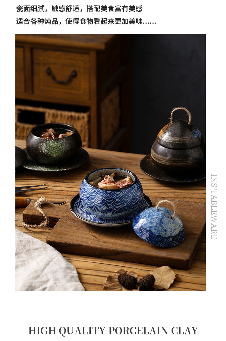 창의적인 거친 도자기 스튜 컵, 1인용 호텔 스튜, 스튜 수프, 스튜 계란, 디저트, 타원형 도자기 스튜 컵, 스낵 및 반찬스토어 가기