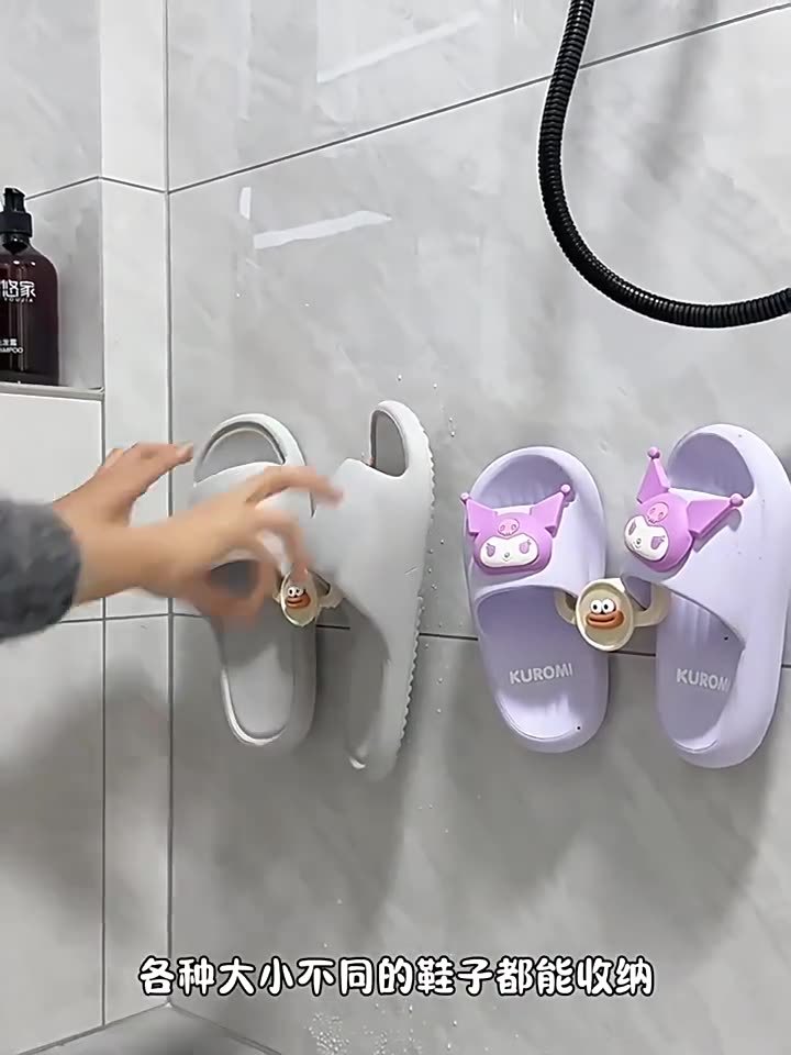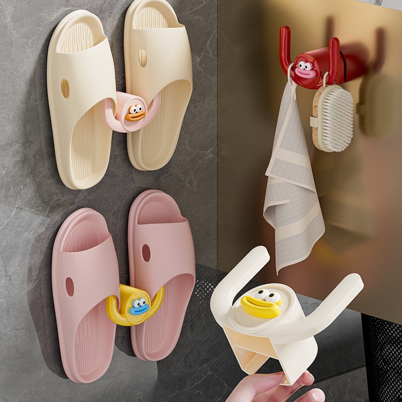 욕실 벽걸이 슬리퍼 걸이, 못 없이 접착식 걸이, 구멍 없이 설치되는 욕실 수납 선반, 신발 건조 및 배수 다기능