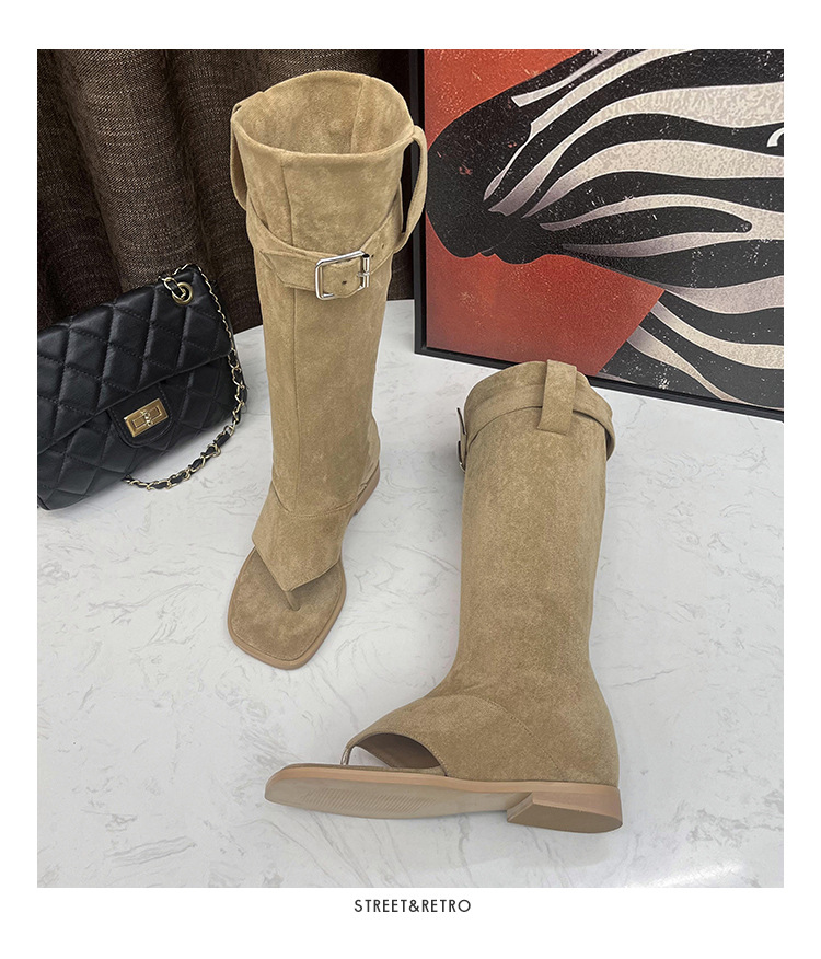 여성을위한 스팟 틈새 플립 플롭 샌들 2025 봄 여름 새로운 스타일 다크 미드 튜브 부츠 플리츠 페이스트 부츠 웨스턴 부츠