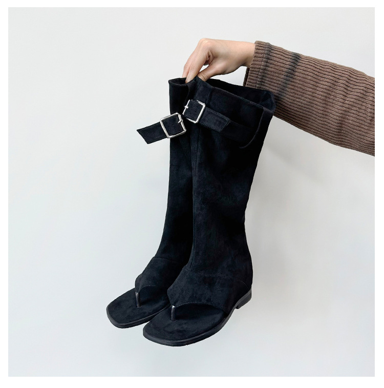 여성을위한 스팟 틈새 플립 플롭 샌들 2025 봄 여름 새로운 스타일 다크 미드 튜브 부츠 플리츠 페이스트 부츠 웨스턴 부츠스토어 가기