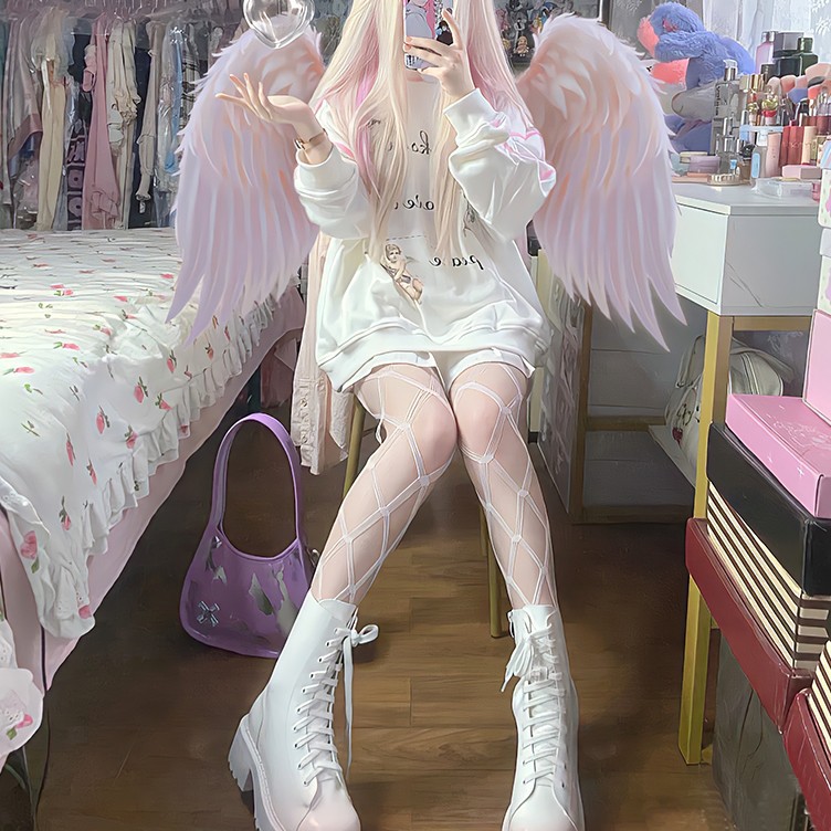• 나비가 달린 스플라이스 피쉬넷 스타킹