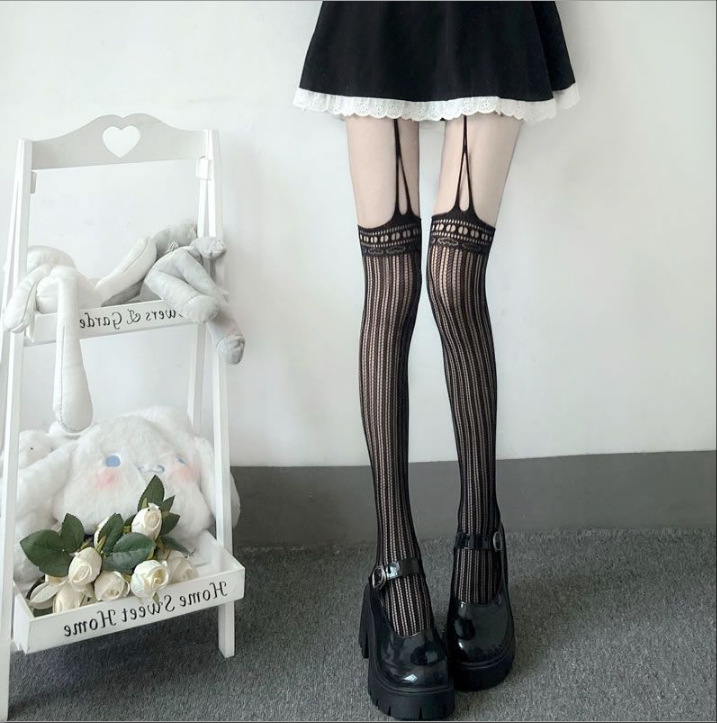 여성용 꽃덩굴 로리타 스타킹 봄 여름 중공 망사 스타킹 안티 슬립 레이스 팬티 스타킹 검은 실크 마이크로 압력 아름다운 다리