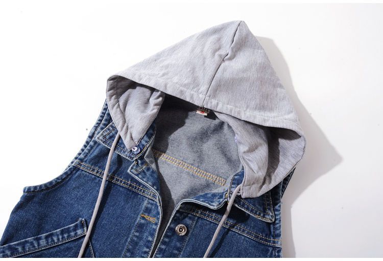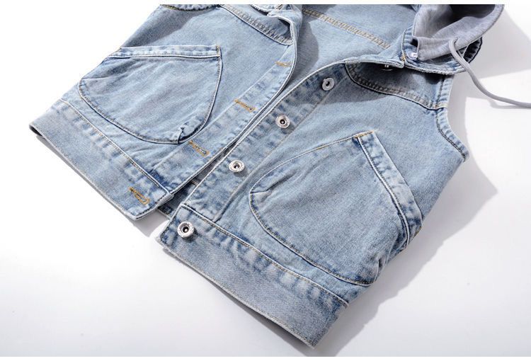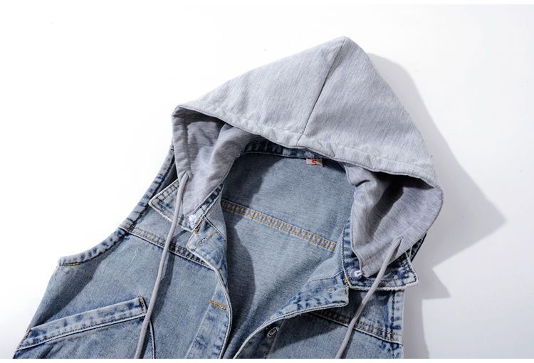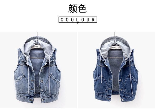 데님 조끼 여성 봄, 가을 한국 스타일 슬림 아우터 새로운 후드 조끼 조끼 다용도 짧은 스타일 학생 Shi Hua