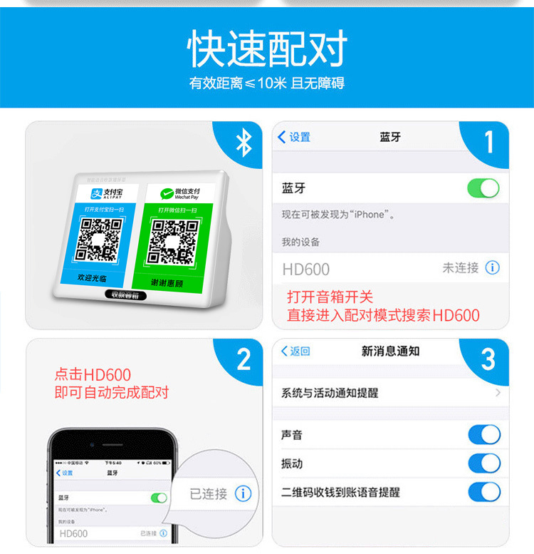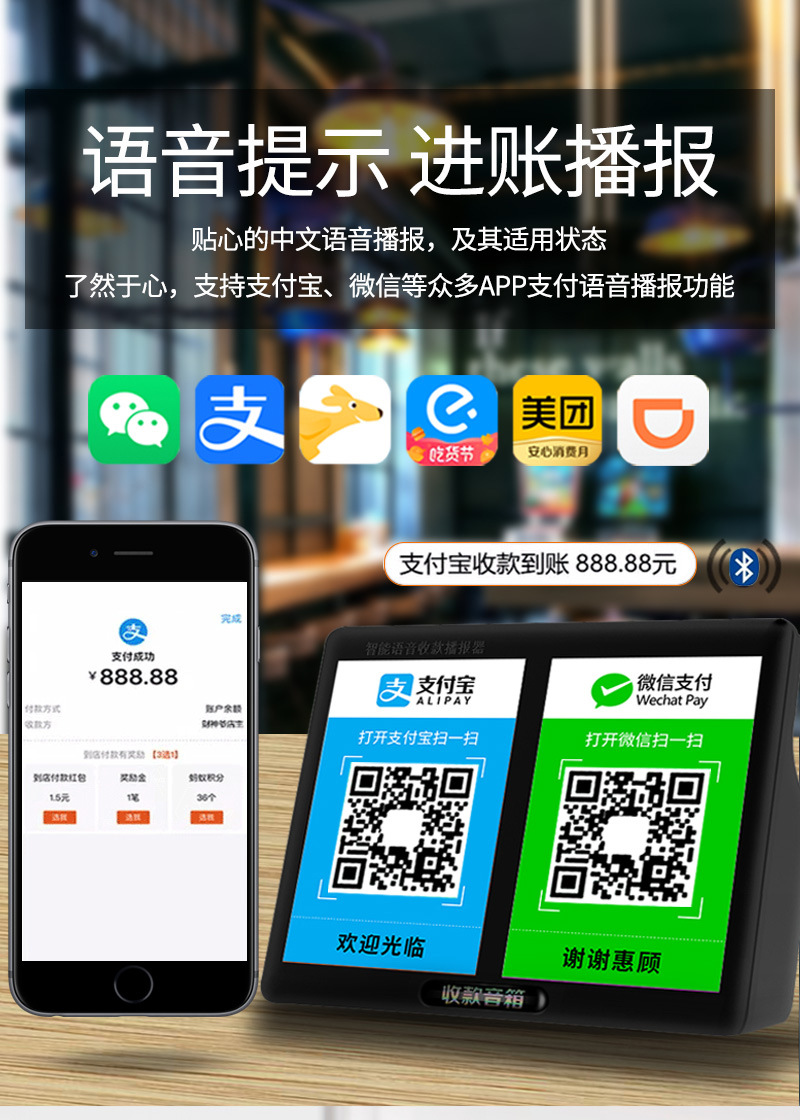 위챗 알리페이 QR코드 안내 블루투스 스피커 노점용 안내기 휴대폰 스캔 스피커 휴대용 스피커