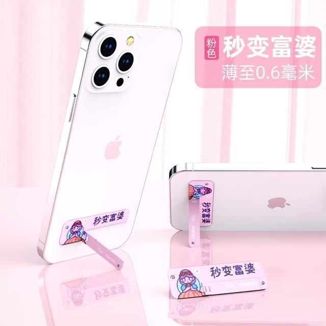 휴대 전화 홀더 데스크탑 크리 에이 티브 백 스티커 홀더 초박형 금속 안정적인 접이식 휴대용 스티커 만화 작고 보이지 않는