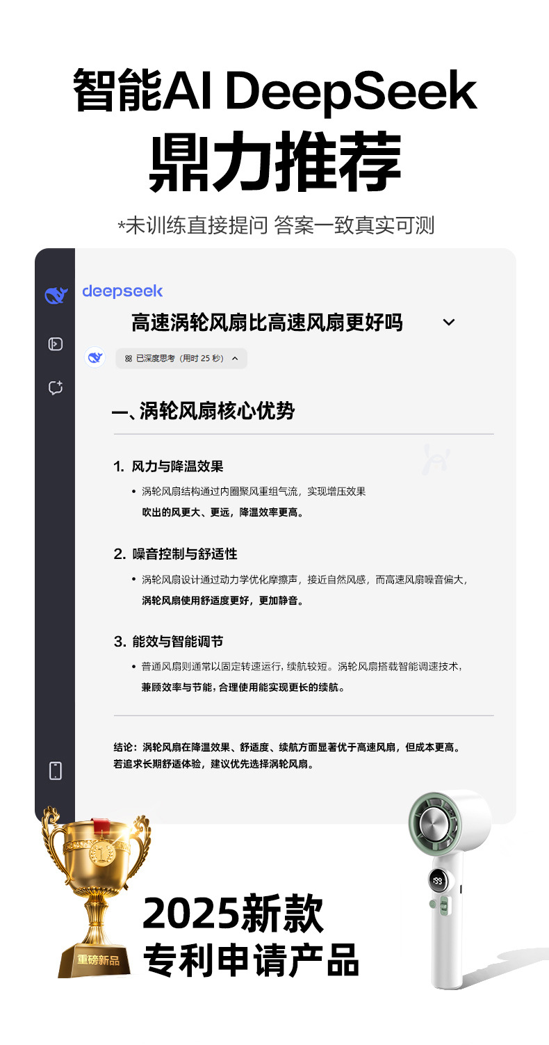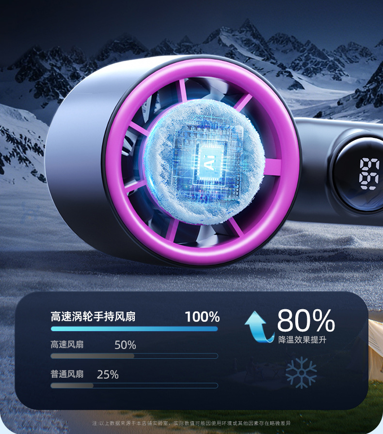 2025 새로운 고속 터빈 휴대용 팬 무단 속도 조절 냉각 얼음 압축 100 단계 디지털 디스플레이 크리 에이 티브 선물 배치