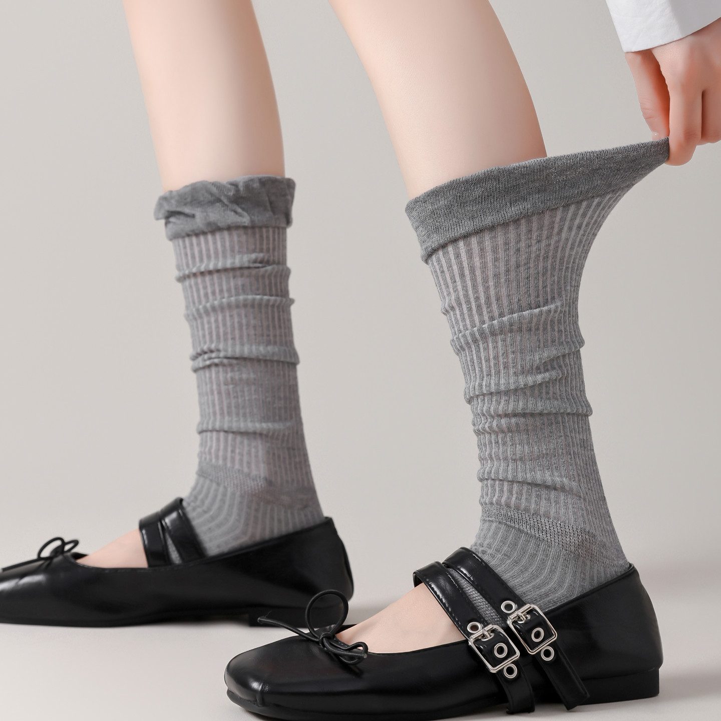 여름 레이스 양말 프렌치 발레 미우 여성용 스트라이프 롱 버블 입 발가락 노출 종아리 양말스토어 가기