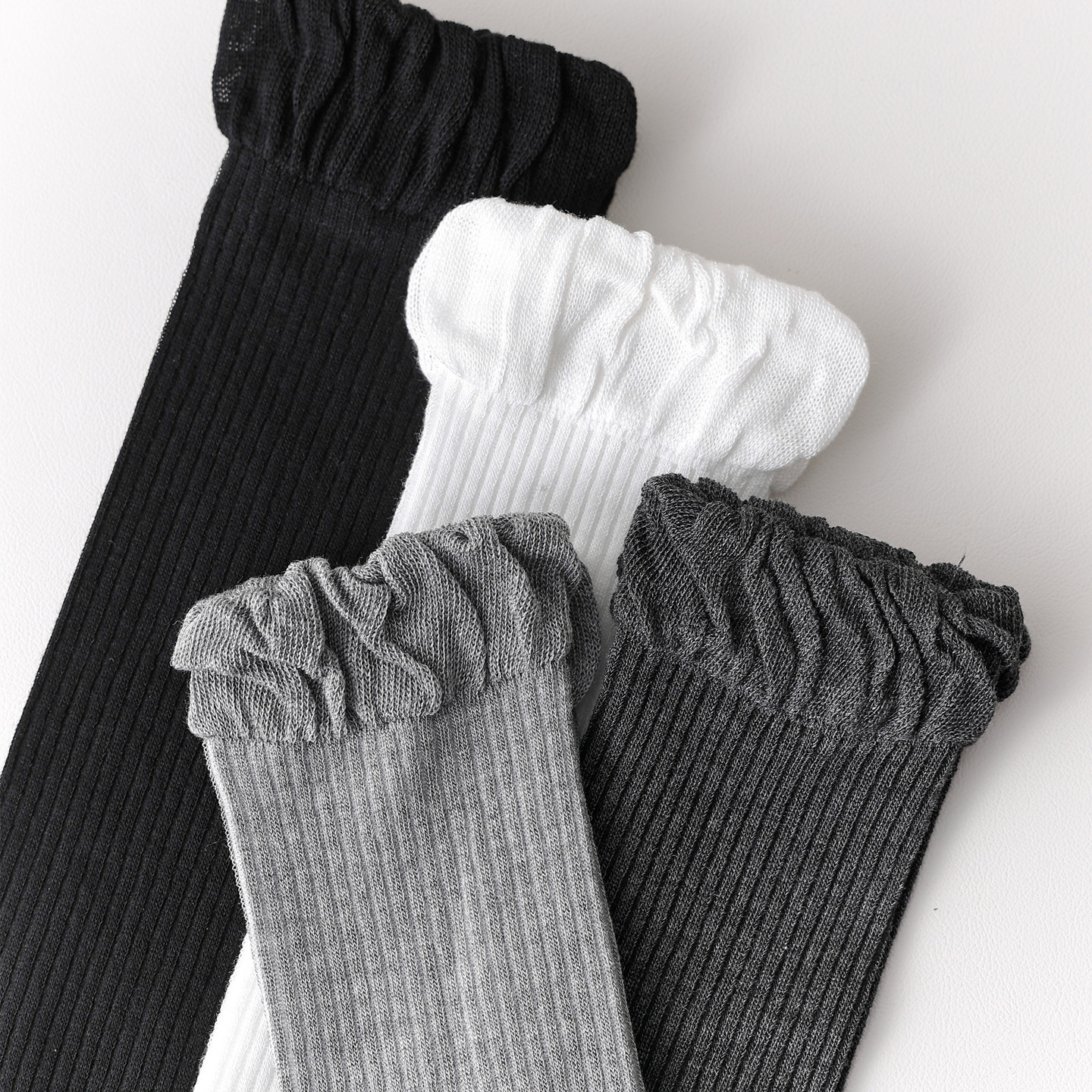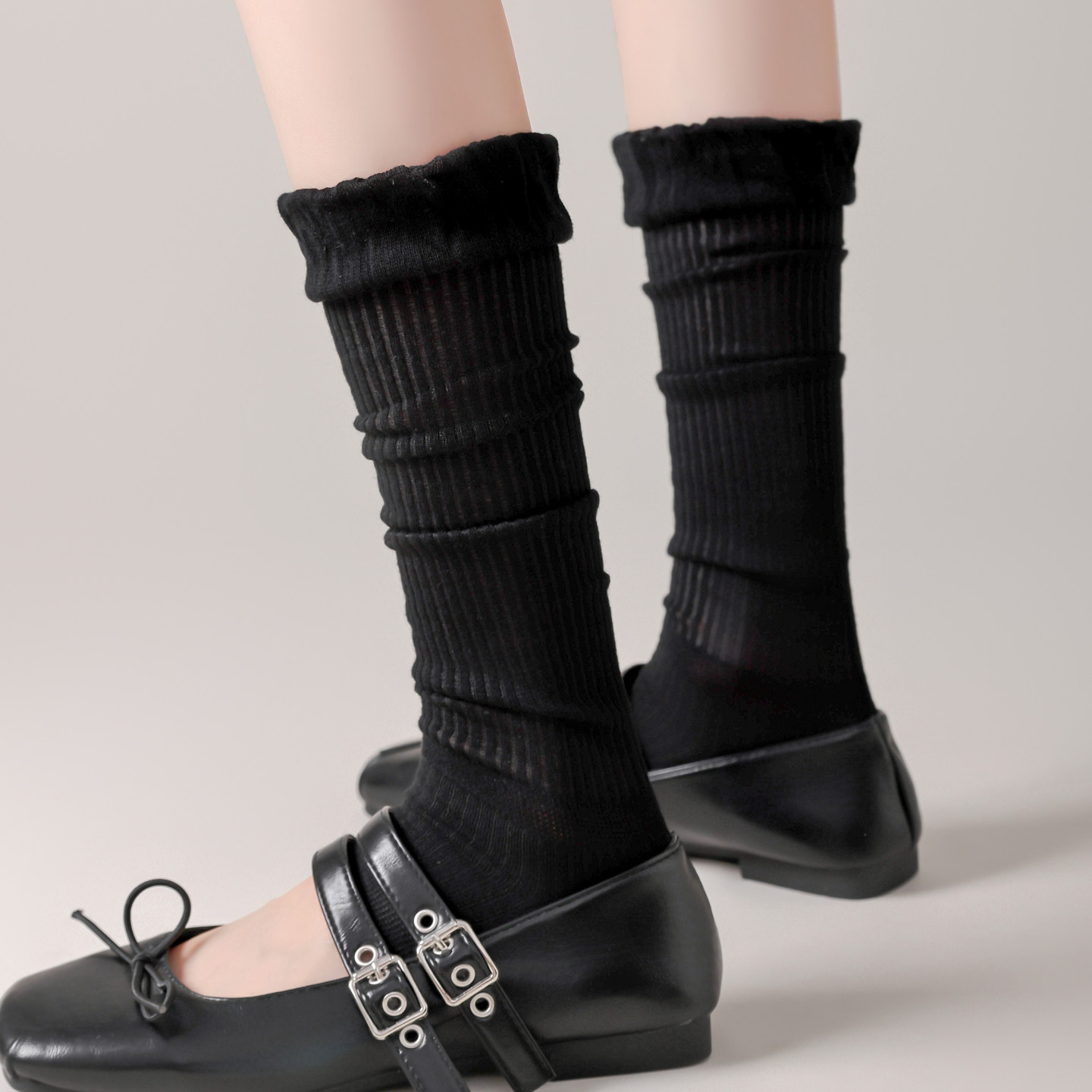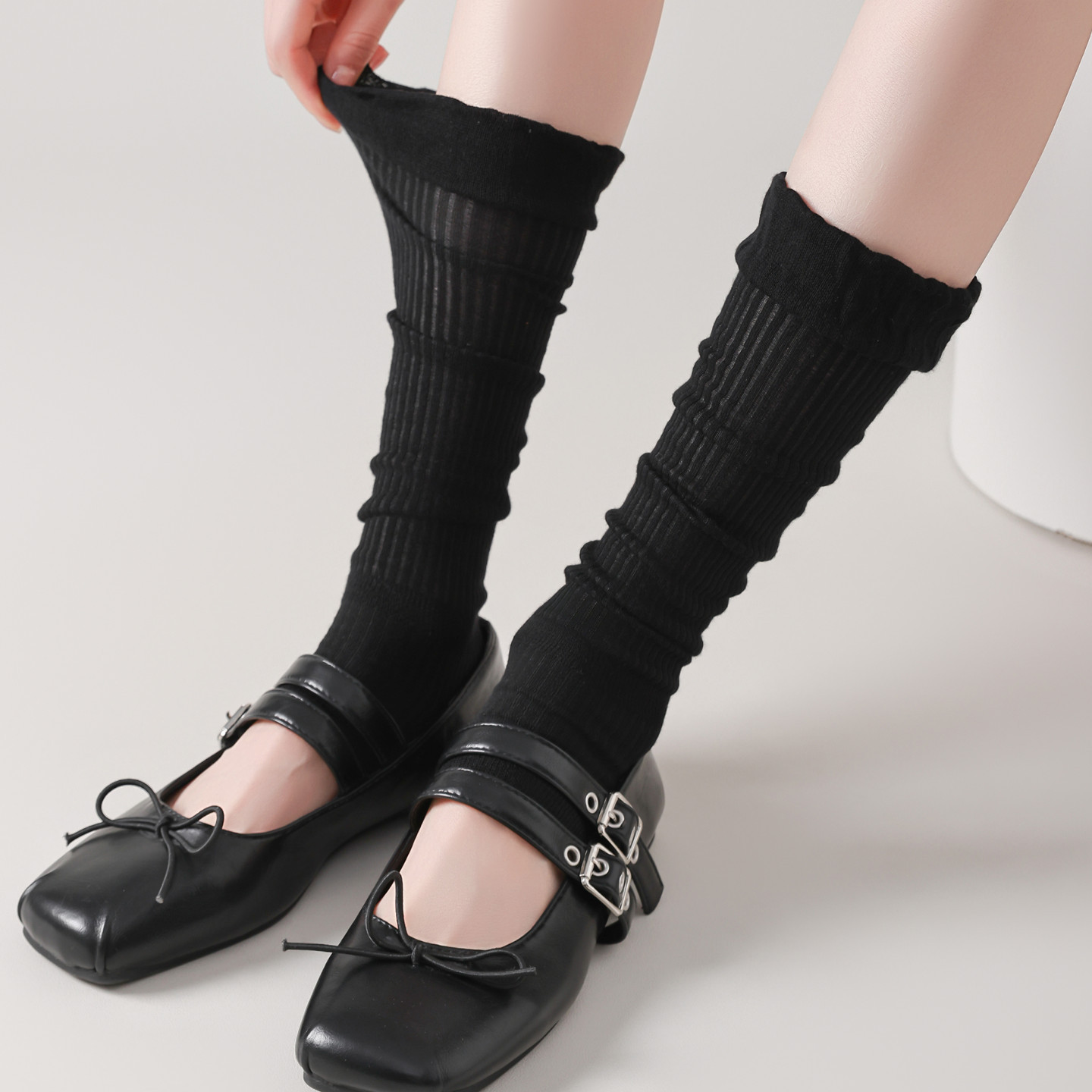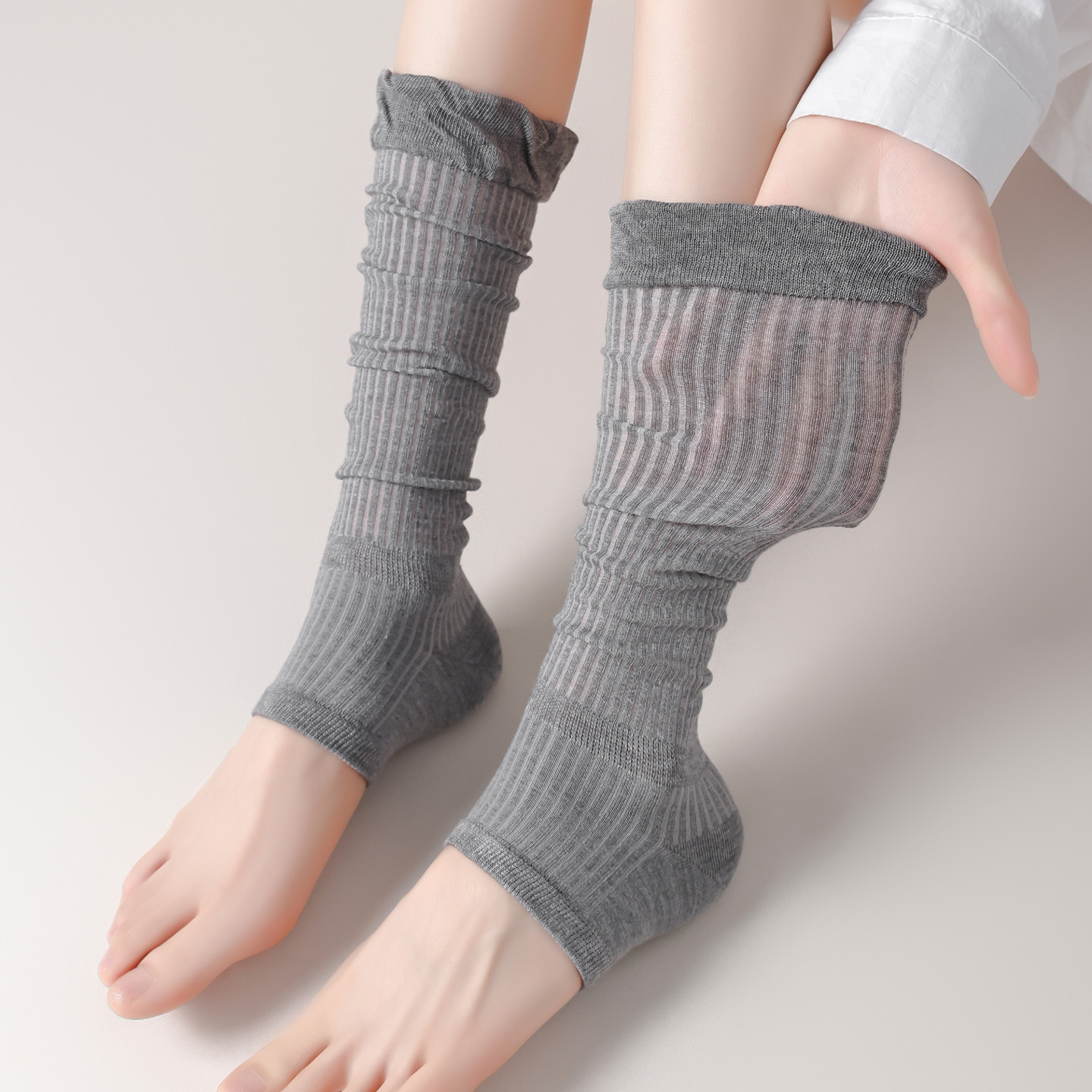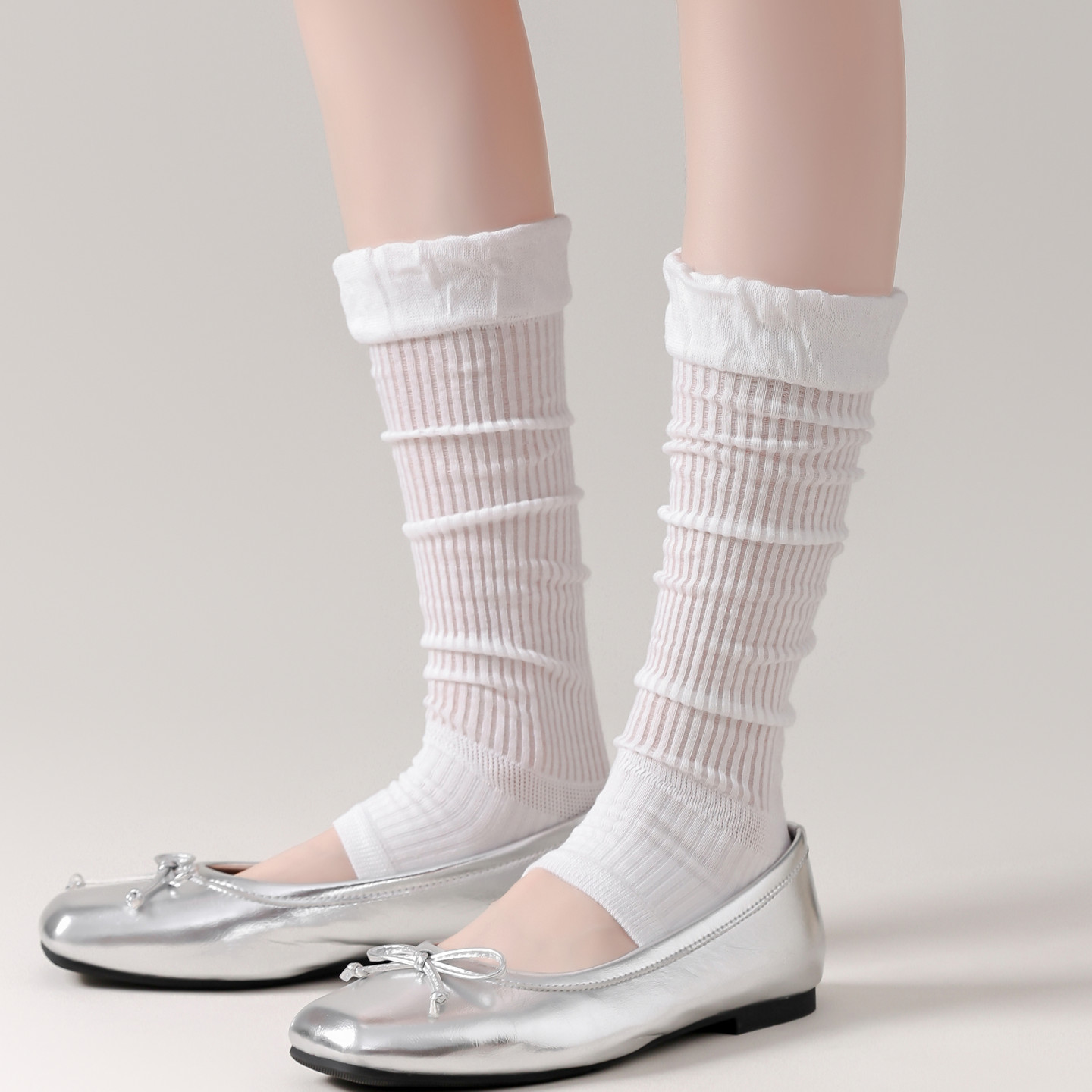 여름 레이스 양말 프렌치 발레 미우 여성용 스트라이프 롱 버블 입 발가락 노출 종아리 양말