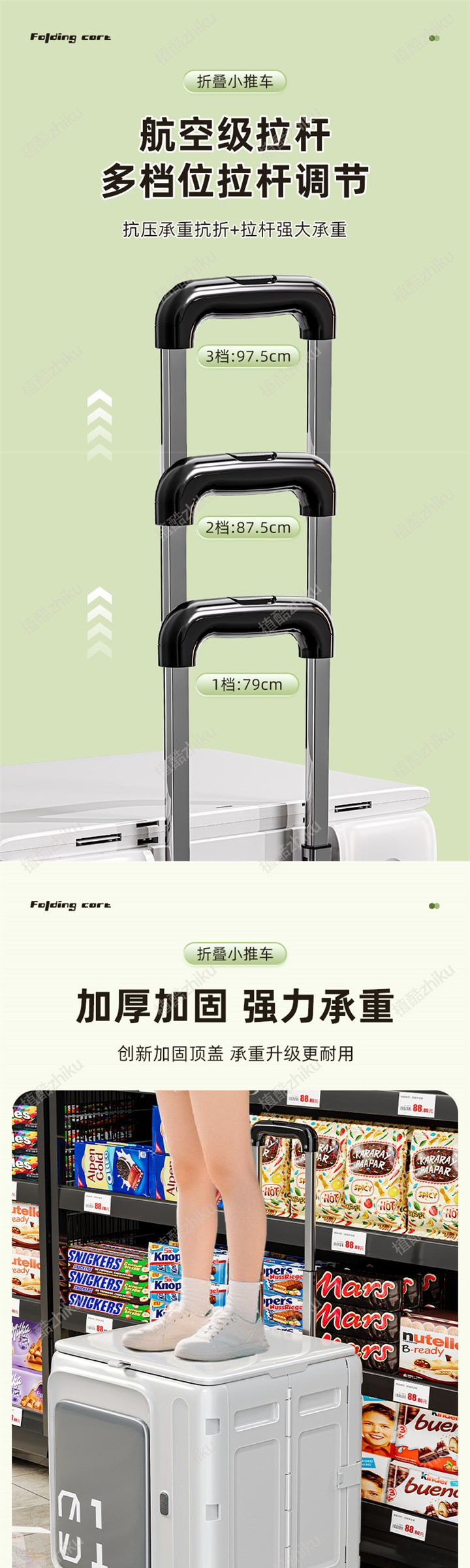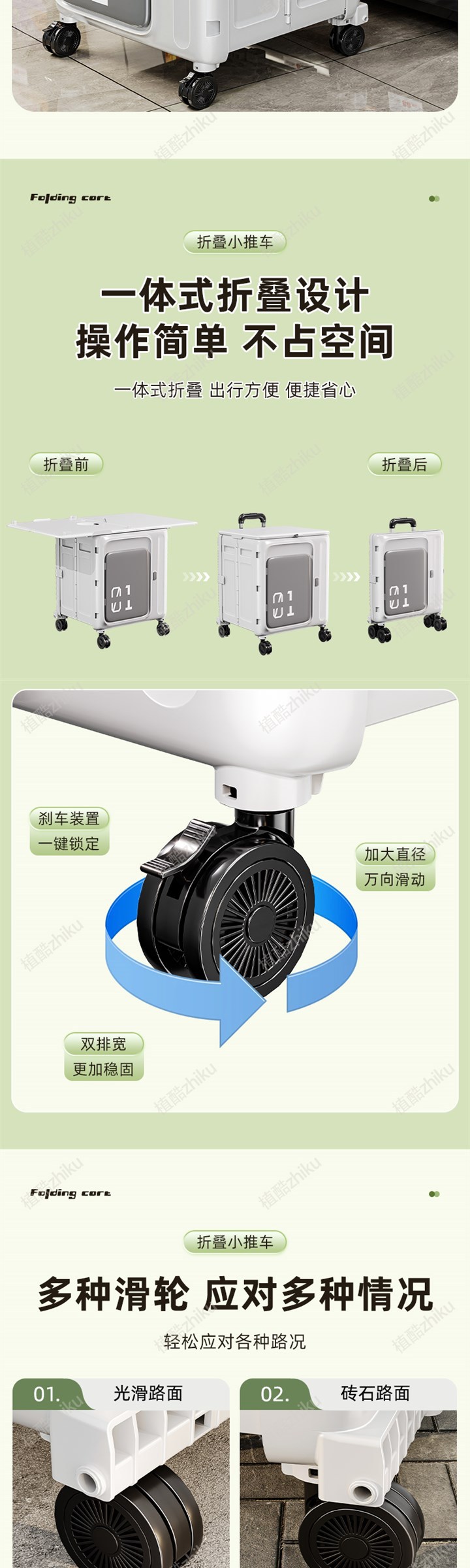 • [유니버설 4륜-녹색-커버 포함] 알루미늄 합금 폴을 납작하게 당길 수 있음