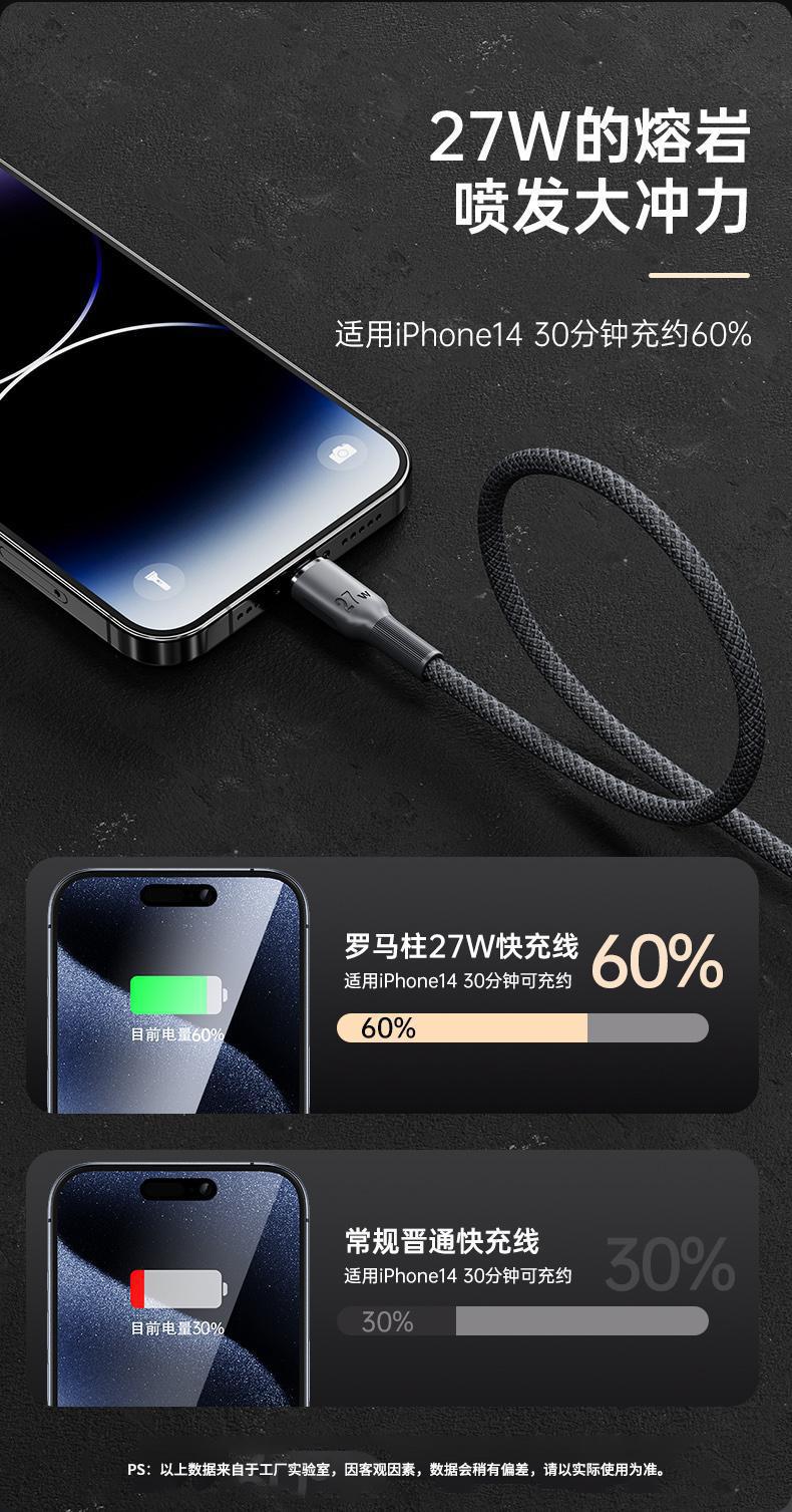 PD27W 고속 충전 데이터 케이블은 Apple 14 충전 케이블 13 고속 충전 케이블 12 자동차 11 땋은 USB 로마 기둥에 적합합니다.스토어 가기