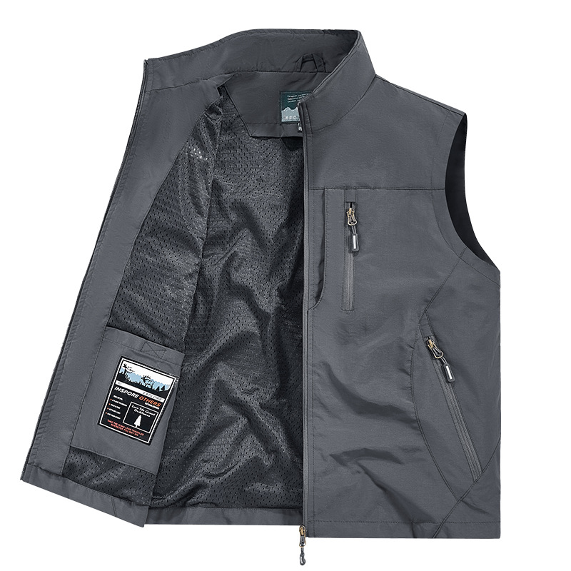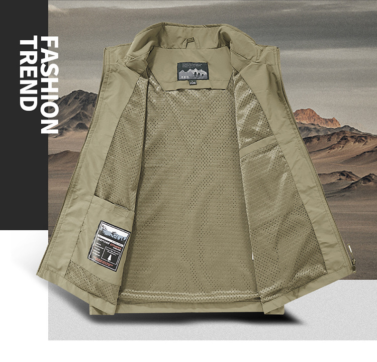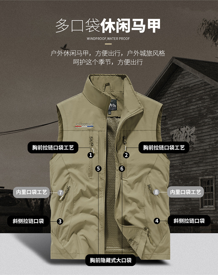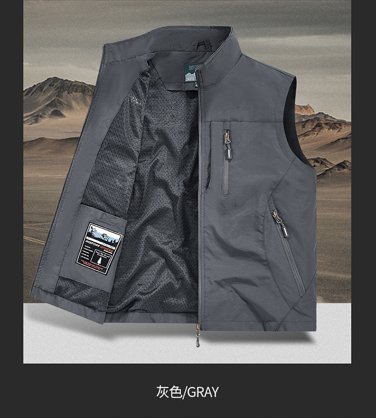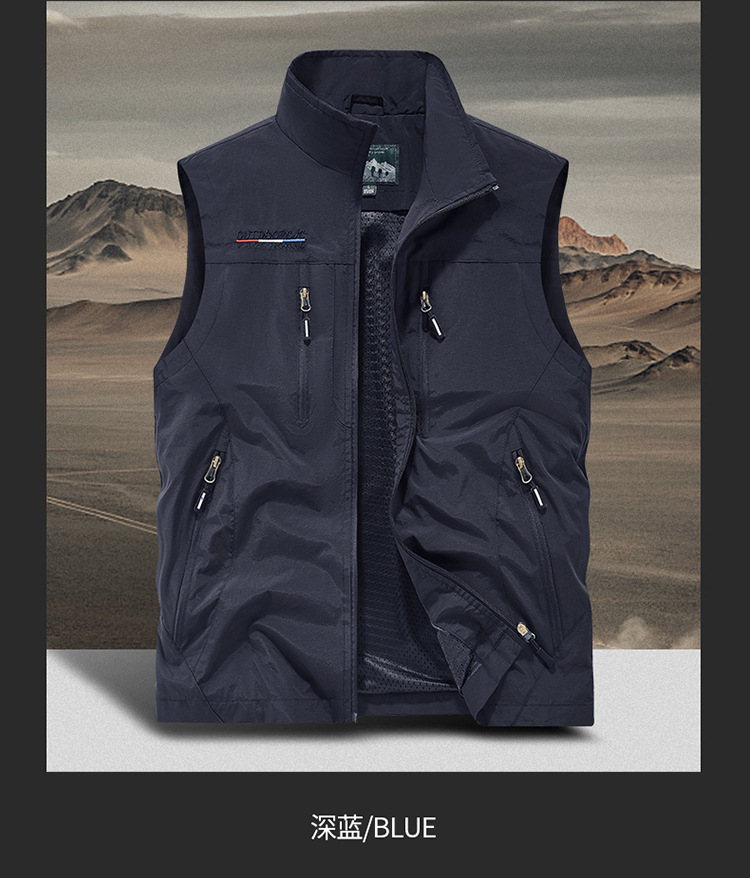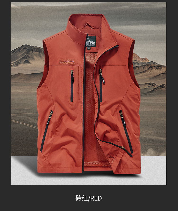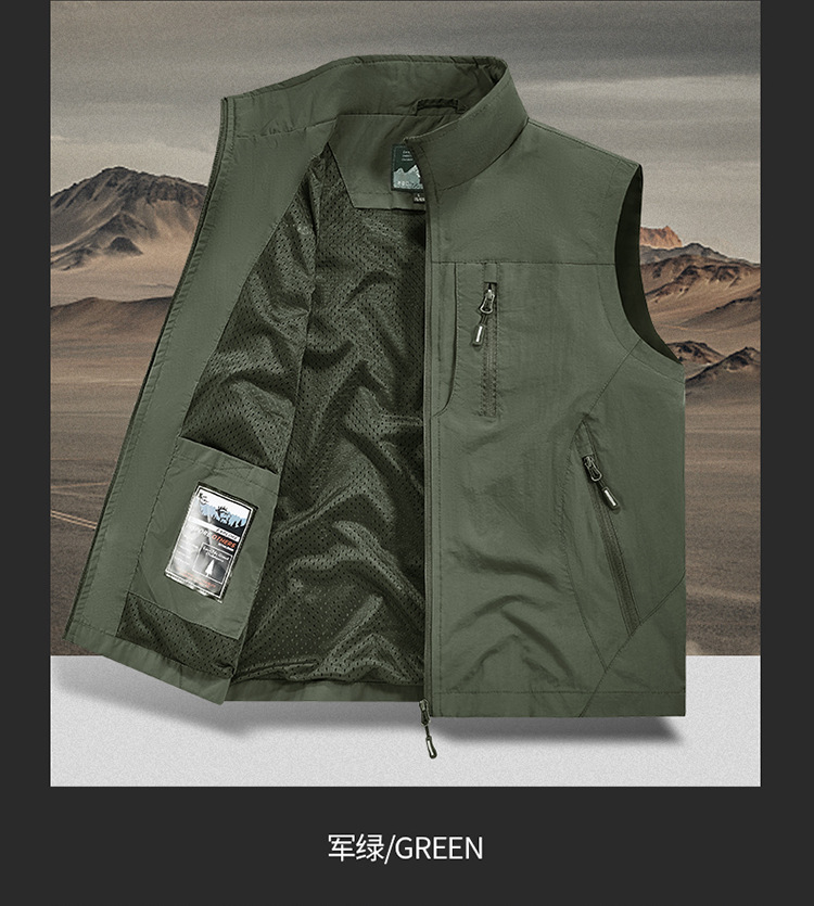 딱! 대외 무역 남성복 공장 테일 아웃도어 스탠드 칼라 기능성 멀티 포켓 방수 통기성 속건 조끼