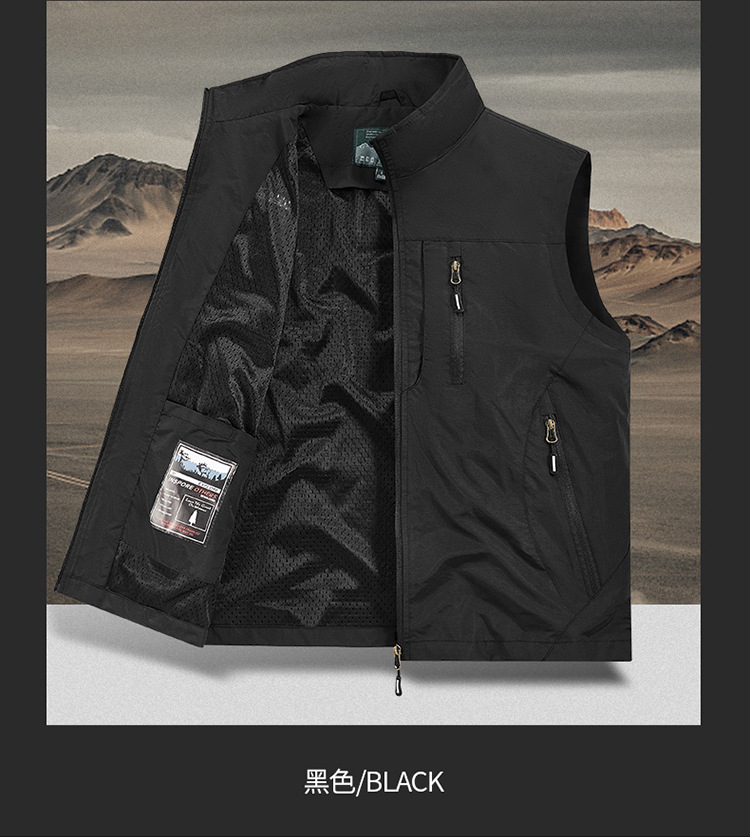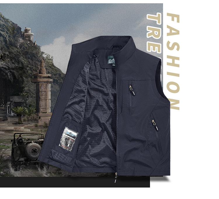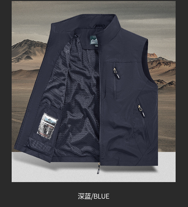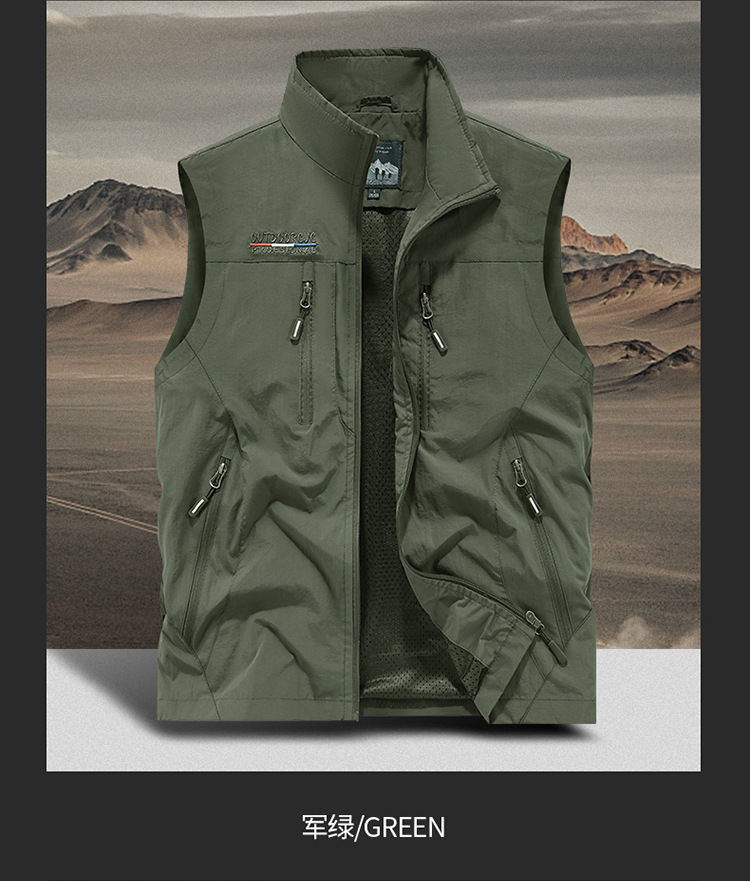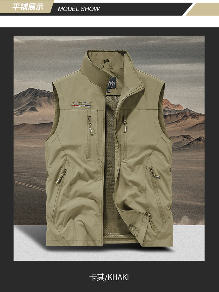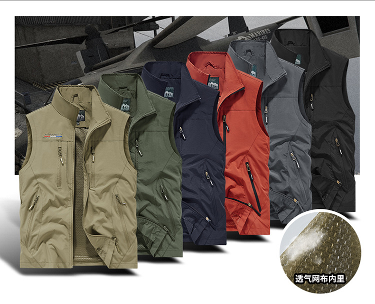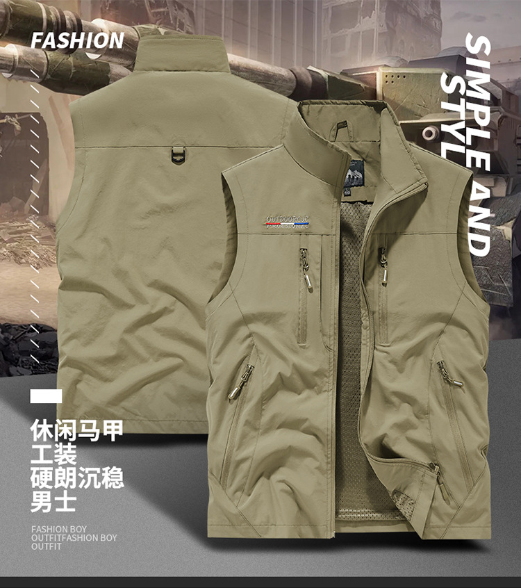 딱! 대외 무역 남성복 공장 테일 아웃도어 스탠드 칼라 기능성 멀티 포켓 방수 통기성 속건 조끼스토어 가기