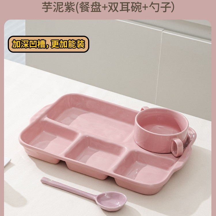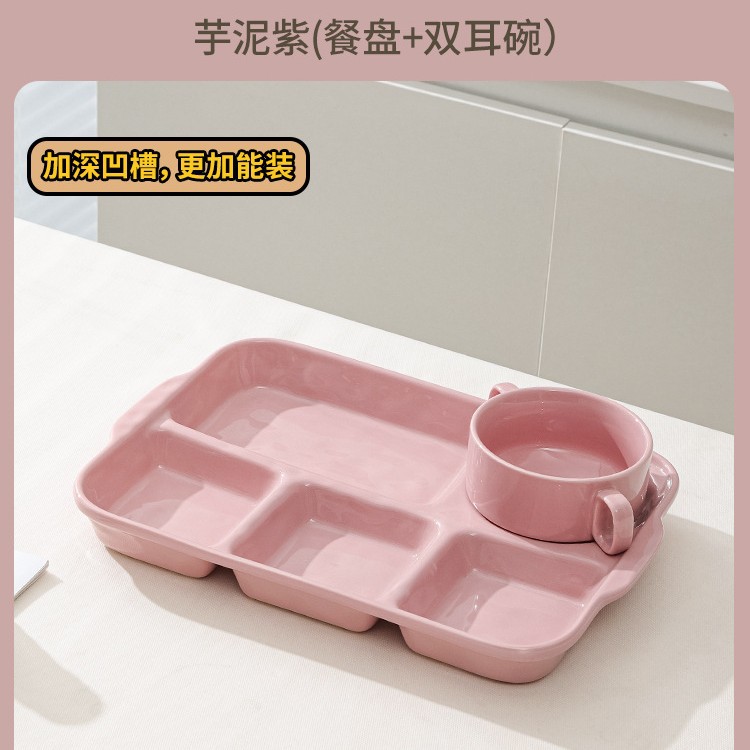 고급스럽고 심플한 크림 스타일의 아침 식사 접시, 창의적이고 가벼운 럭셔리, 지방 감량 유약 세라믹 식기, 분할된 디너 접시