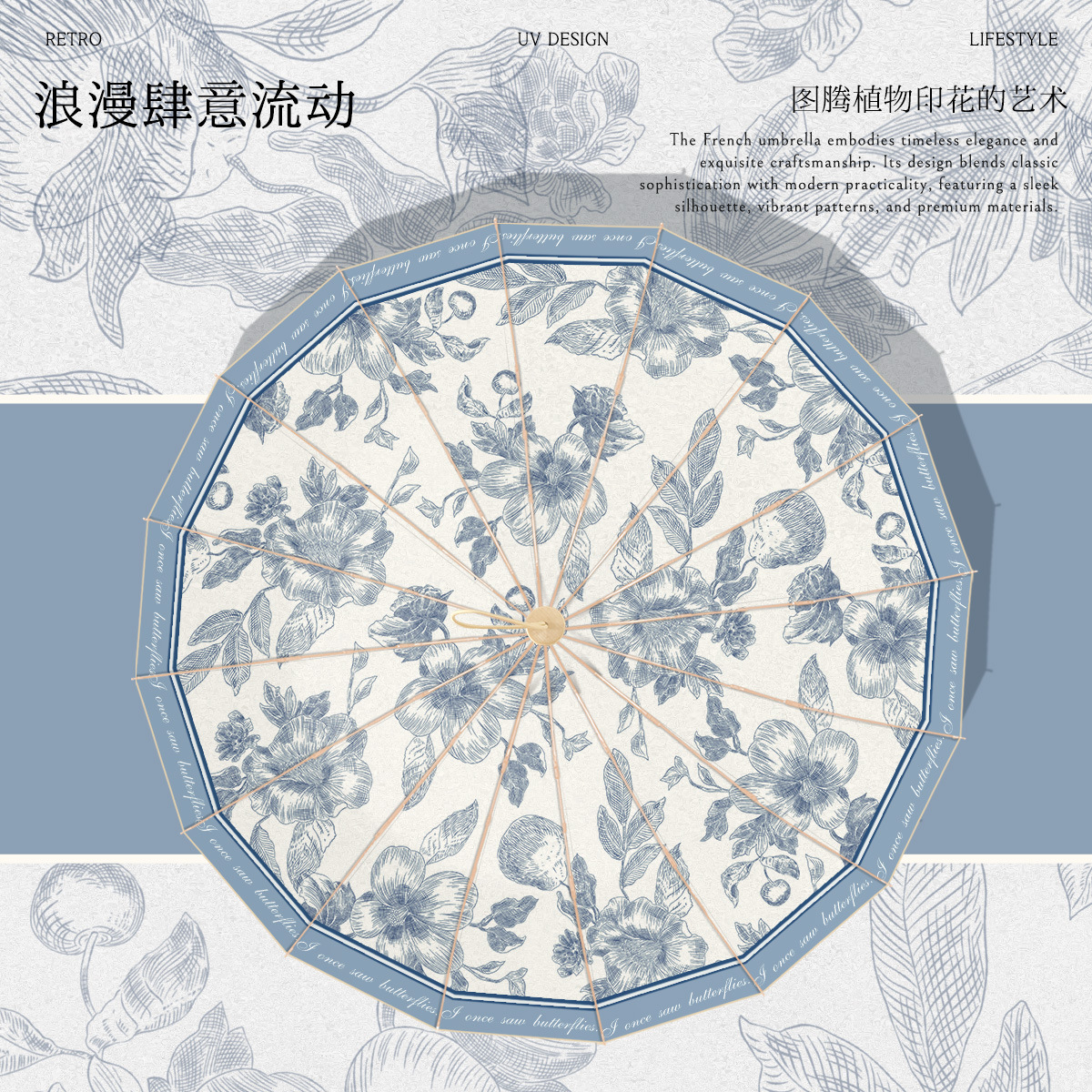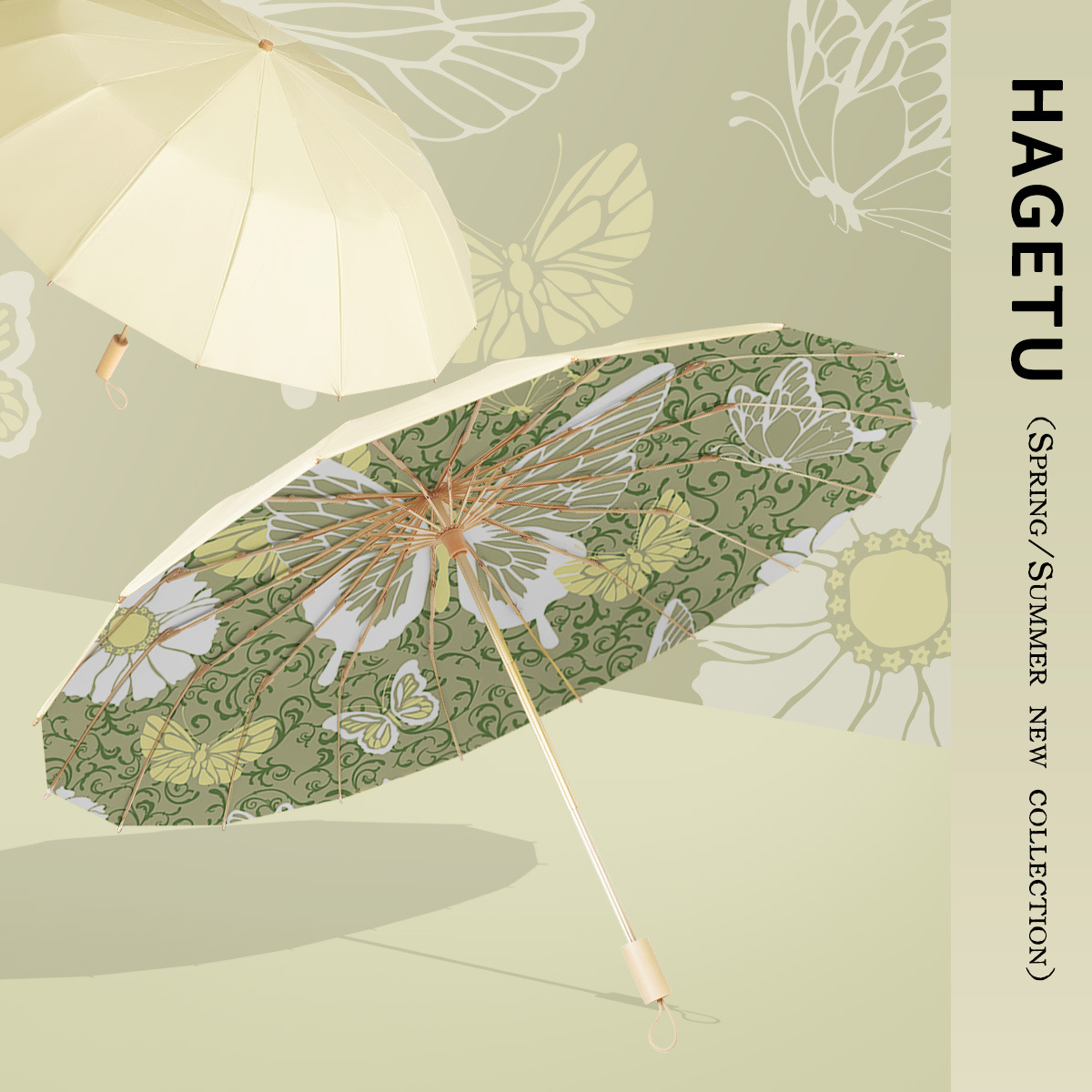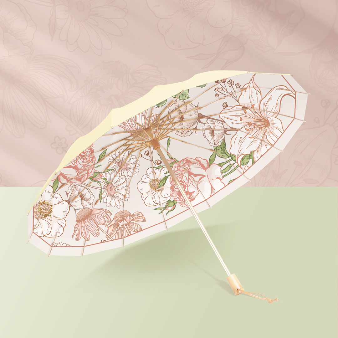 16본 알루미늄 합금 우산꽂이, 견고하고 바람에 강하며 자외선 차단, 자외선 차단, 햇빛과 비가 오는 이중 목적 접이식 우산, 맞춤형 로고스토어 가기