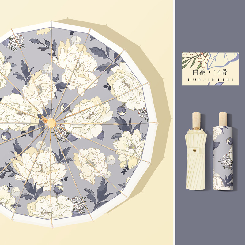16본 알루미늄 합금 우산꽂이, 견고하고 바람에 강하며 자외선 차단, 자외선 차단, 햇빛과 비가 오는 이중 목적 접이식 우산, 맞춤형 로고