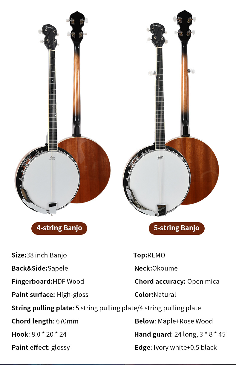 국경 간 뜨거운 판매 모델 38inch 기술 목재 5 현 바인다운 4 현 바인다운 기타 서양 악기 공장 직접 판매
