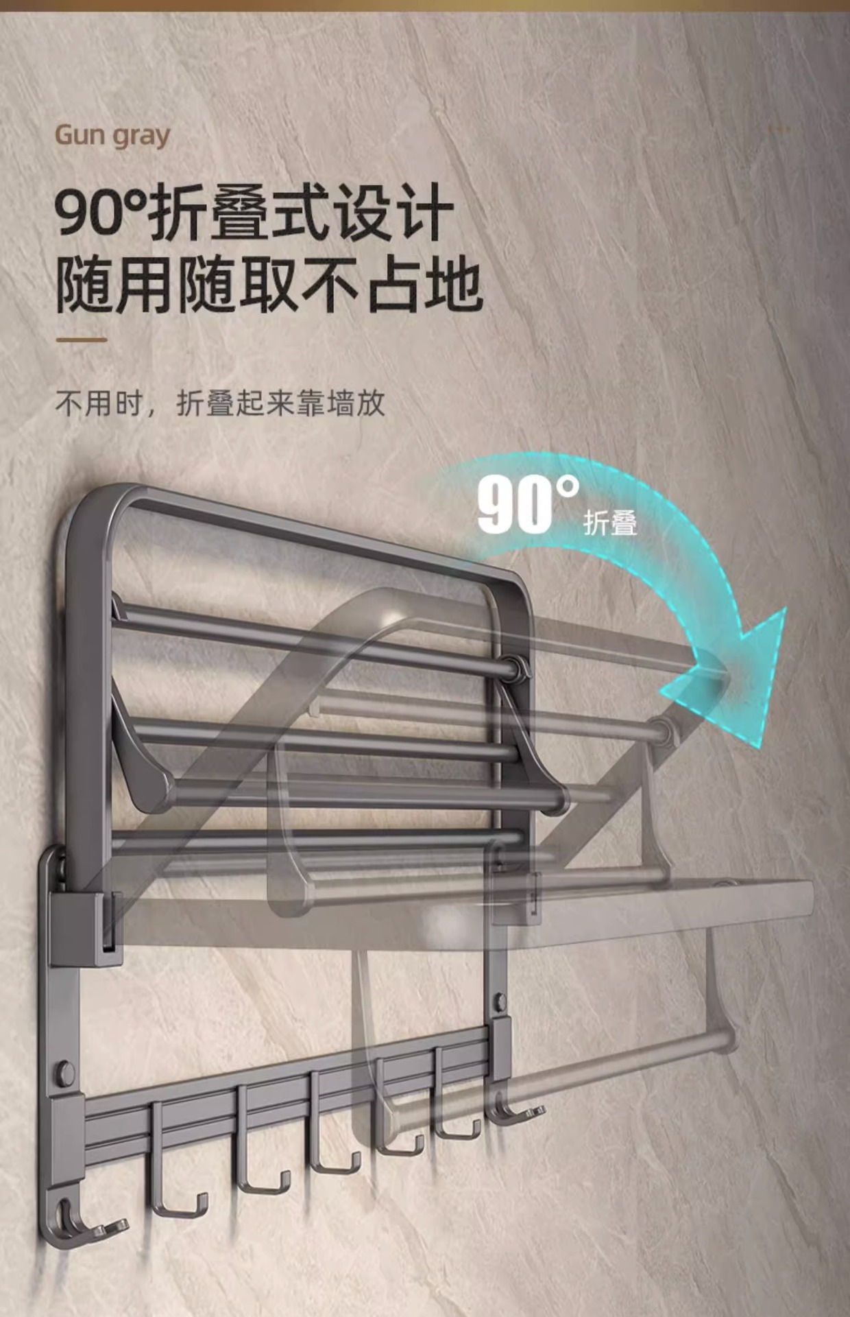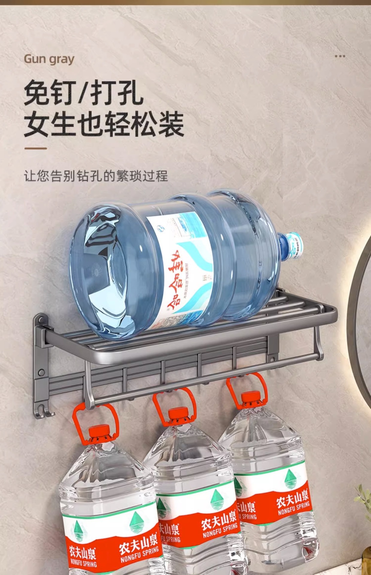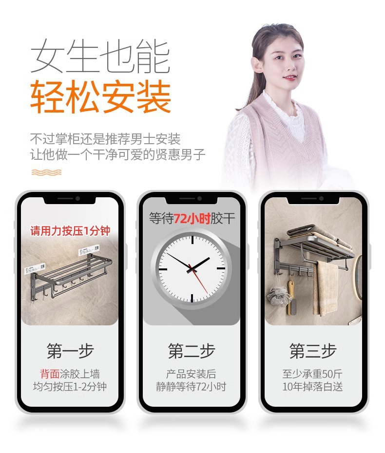 펀치 없는 수건걸이, 접이식 벽걸이 수납선반, 욕실 벽 통풍 및 배수용품 수납선반