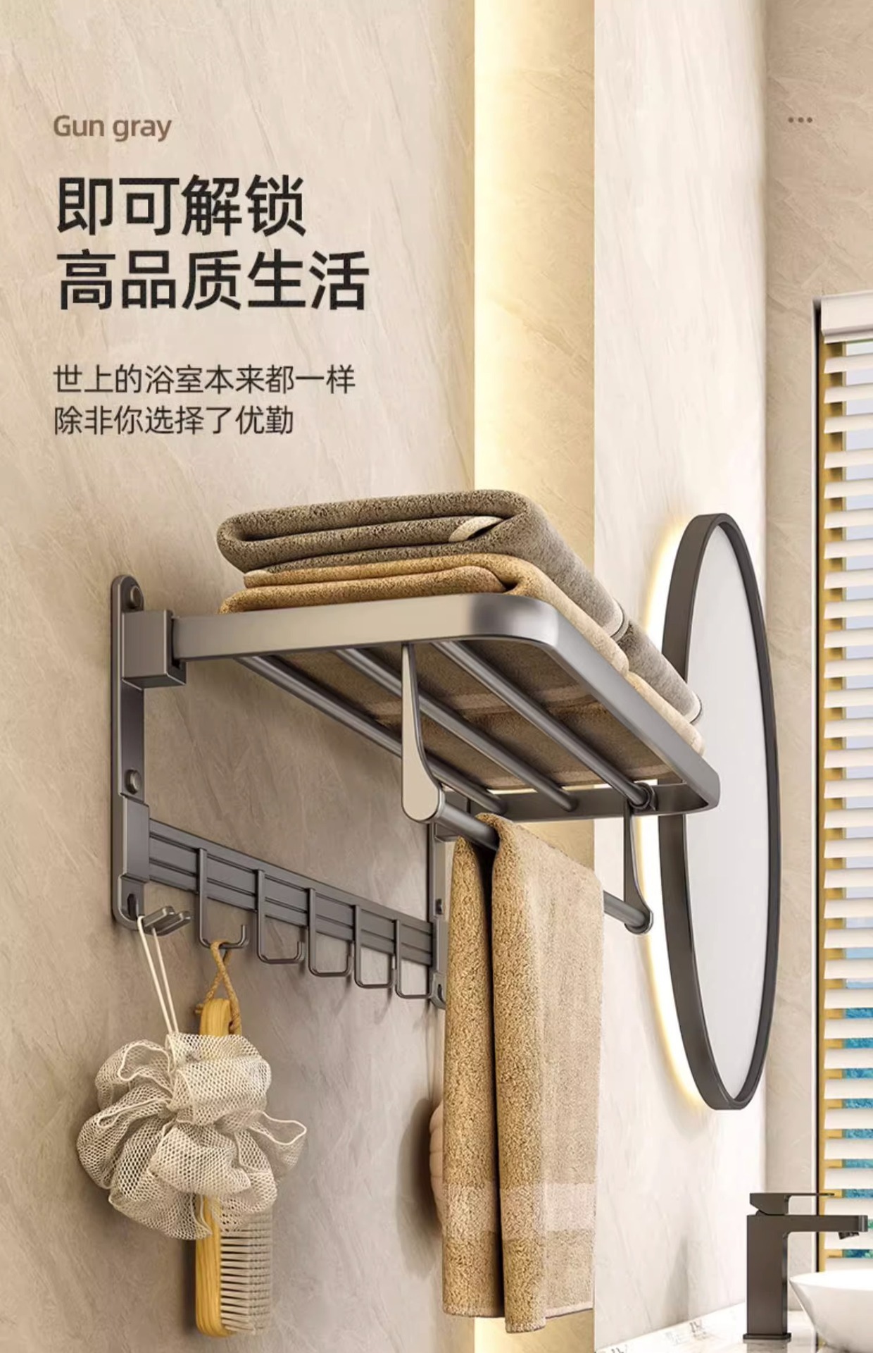 • 플래그십 건 그레이 목욕타월걸이 50cm