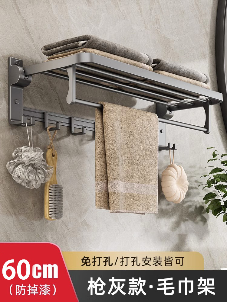 펀치 없는 수건걸이, 접이식 벽걸이 수납선반, 욕실 벽 통풍 및 배수용품 수납선반스토어 가기