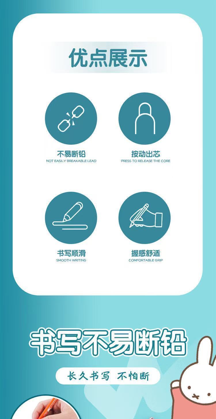 아침 빛 미피 펜던트 자동 연필 크리 에이 티브 만화 초등 학생 0.5 시험 그리기 활동 연필 MF-3009스토어 가기