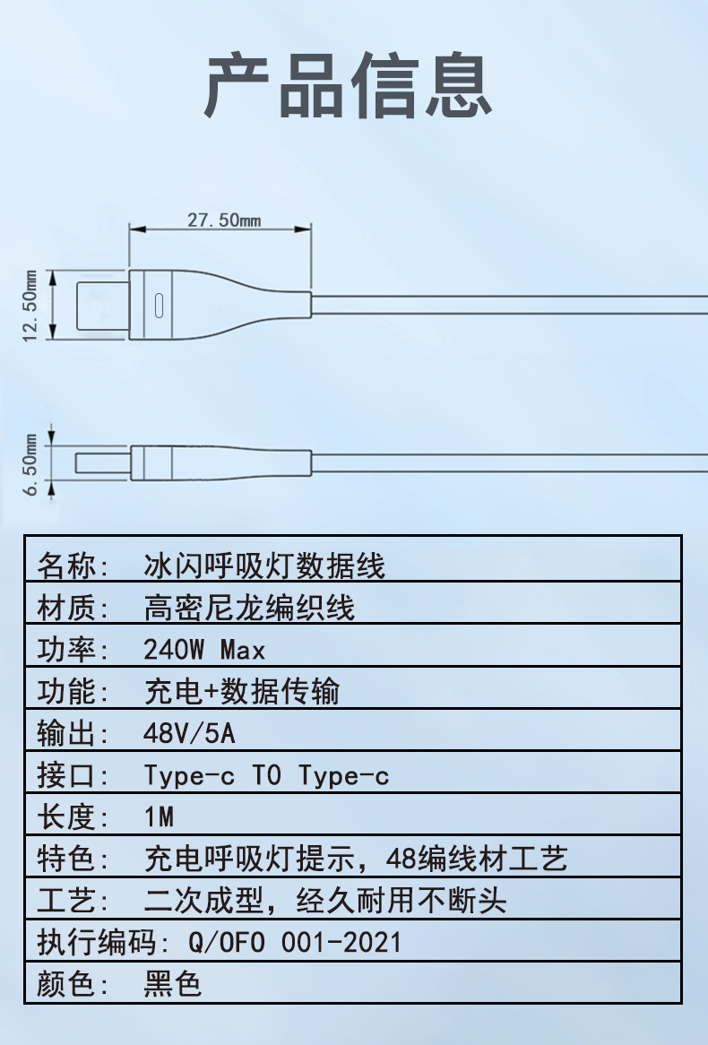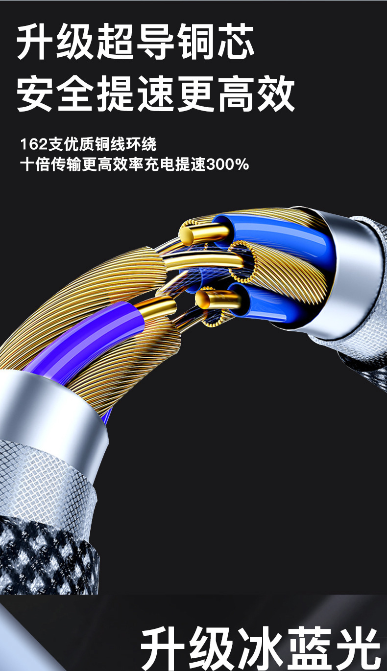 Apple Huawei Xiaomi 플래시 충전 표시기에 적합한 240W 편조 데이터 케이블 아이스 블루 초고속 충전 충전 케이블스토어 가기