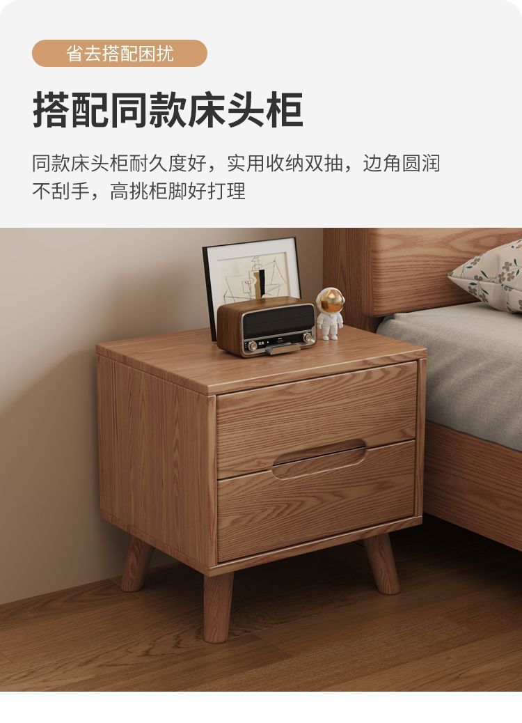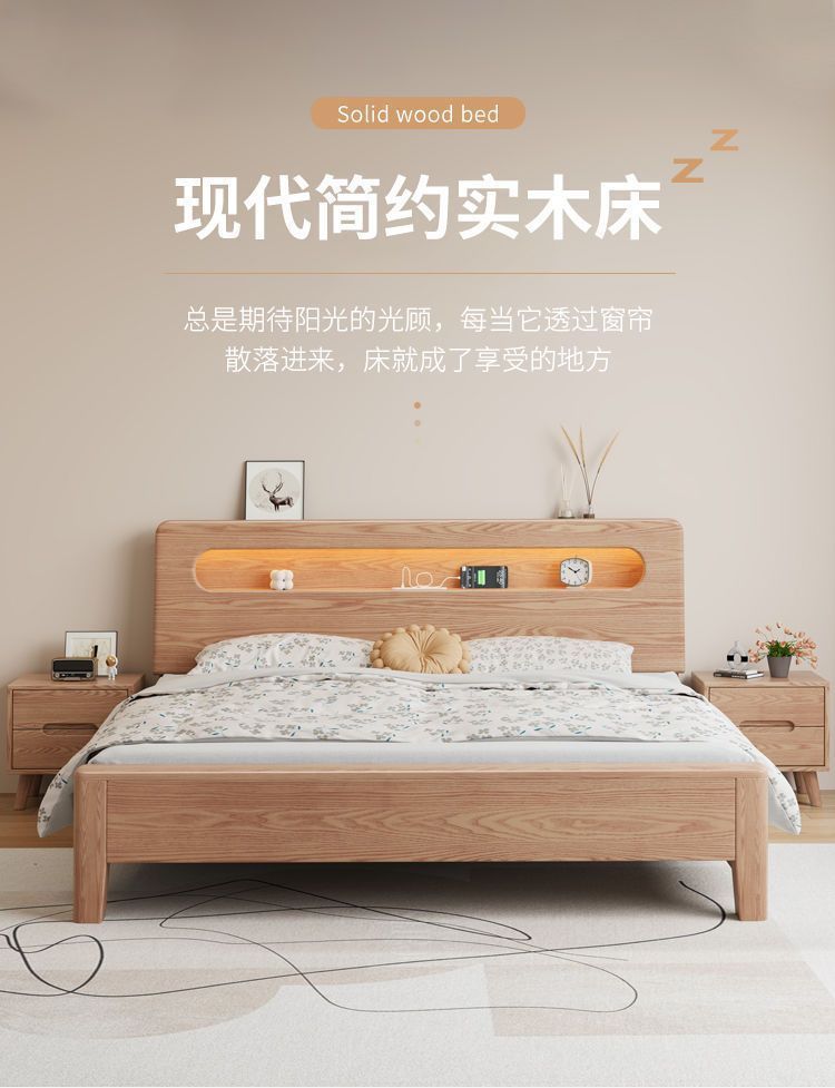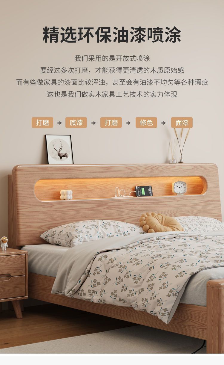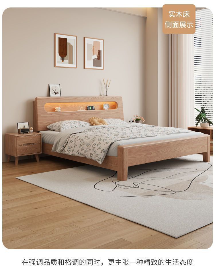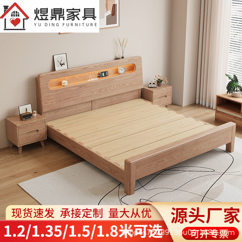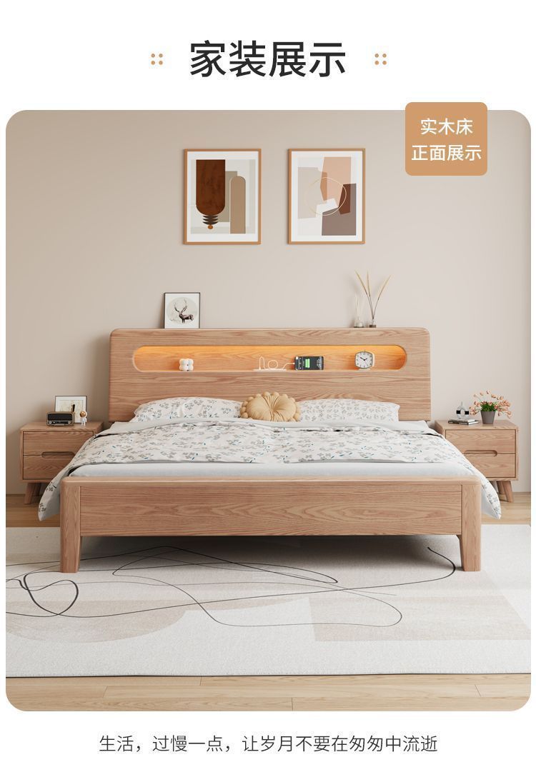 통나무 스타일 애쉬 원목 침대 모따구 구조 1.5m 싱글 침대 1.8m 가정용 더블 침대 무소음 침대스토어 가기